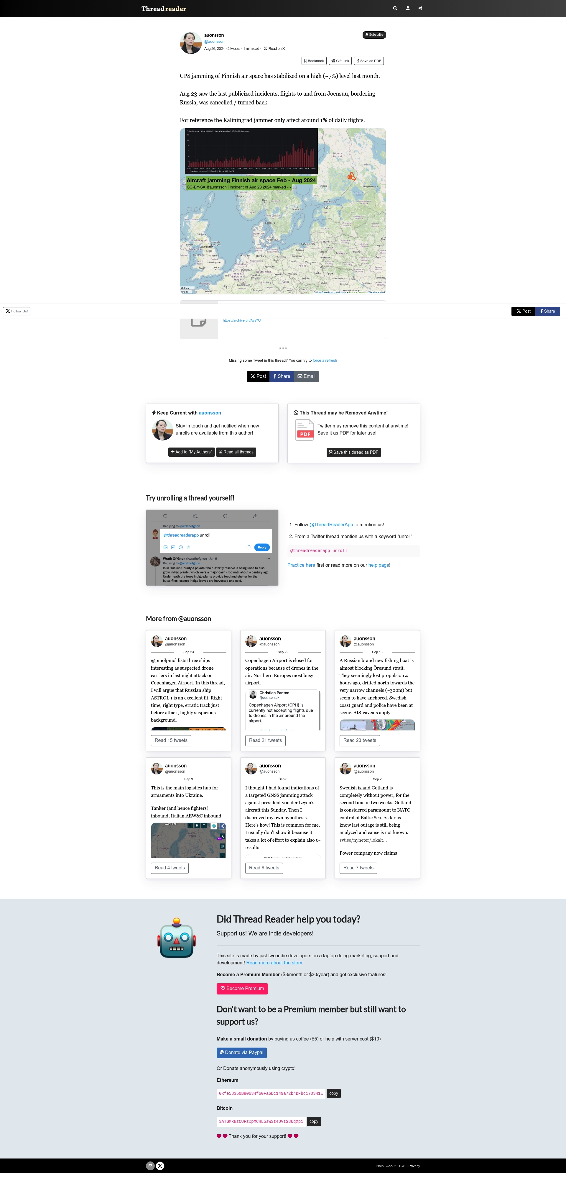 Headline: Aircraft jamming Finnish air space Feb - Aug 2024