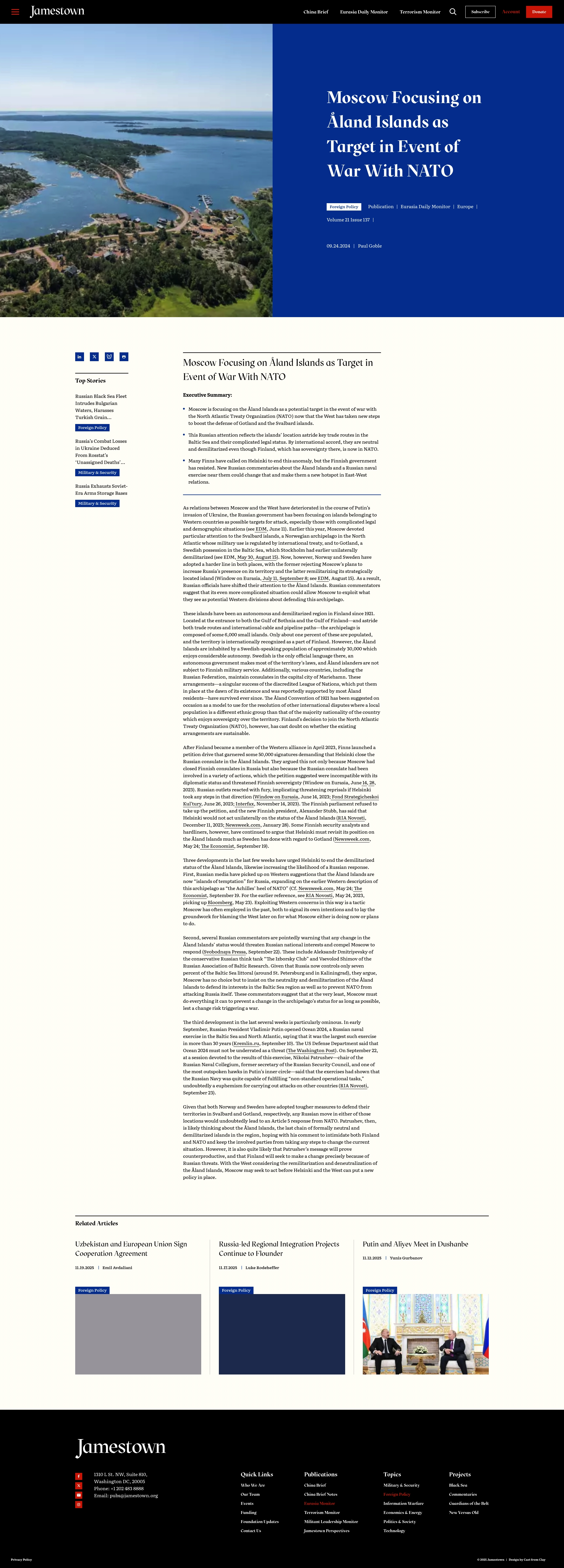 - "Moscow is focusing on the Åland Islands as a potential target in the event of a conflict with the North Atlantic Treaty Organization (NATO) over line."