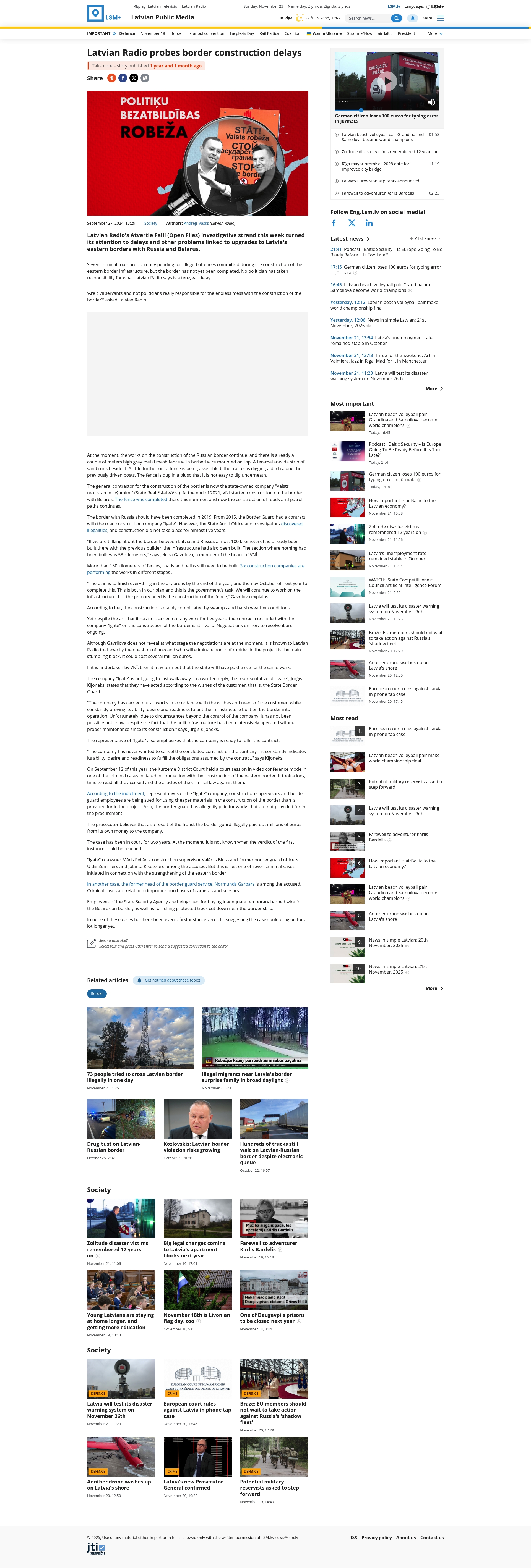 An investigative report by Latvian Radio highlights persistent delays and irregularities in the construction and upgrade of Latvia's eastern border with Russia and Belarus, with concerns over procurement issues, missing documentation, unfinished segments, and questions over accountability.