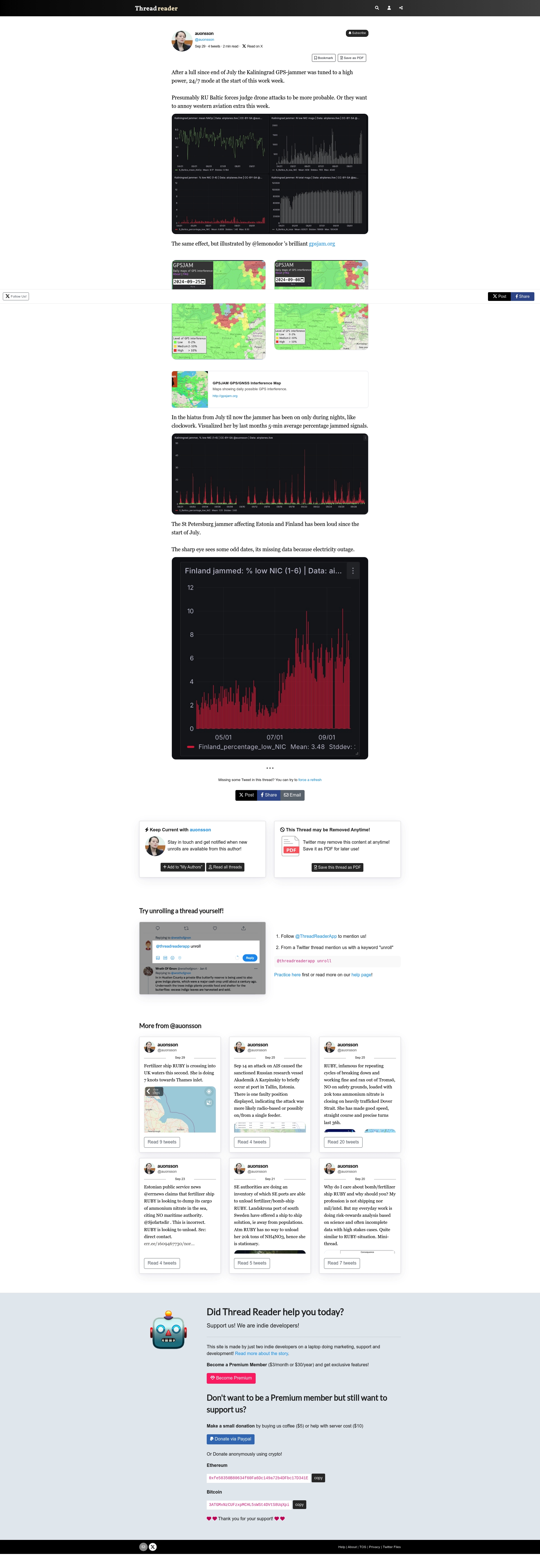 "Screenshots of GPSJAM data maps and time series charts included in the post."