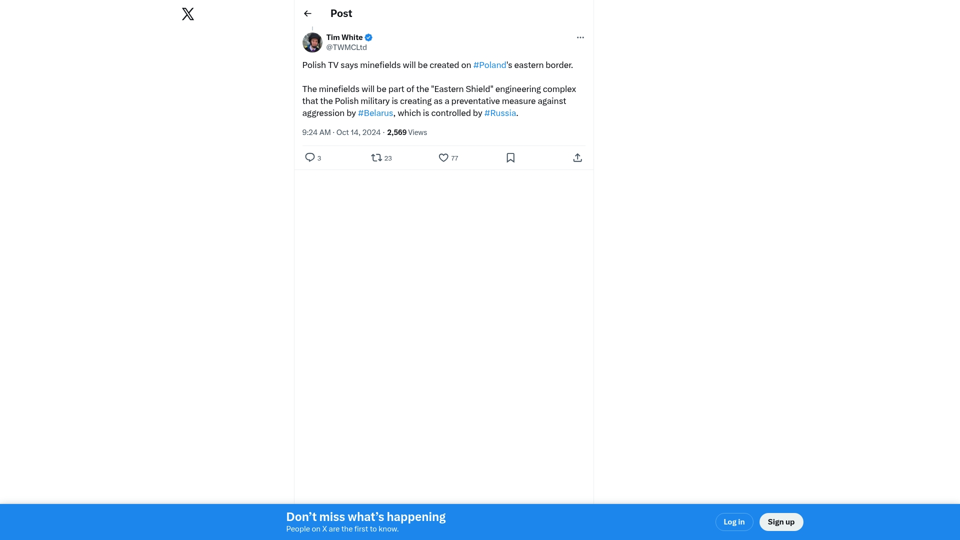- "The minefields will be part of the 'Eastern Shield' engineering complex that the Polish military is creating as a preventative measure against aggression by #Belarus, which is controlled by #Russia."
