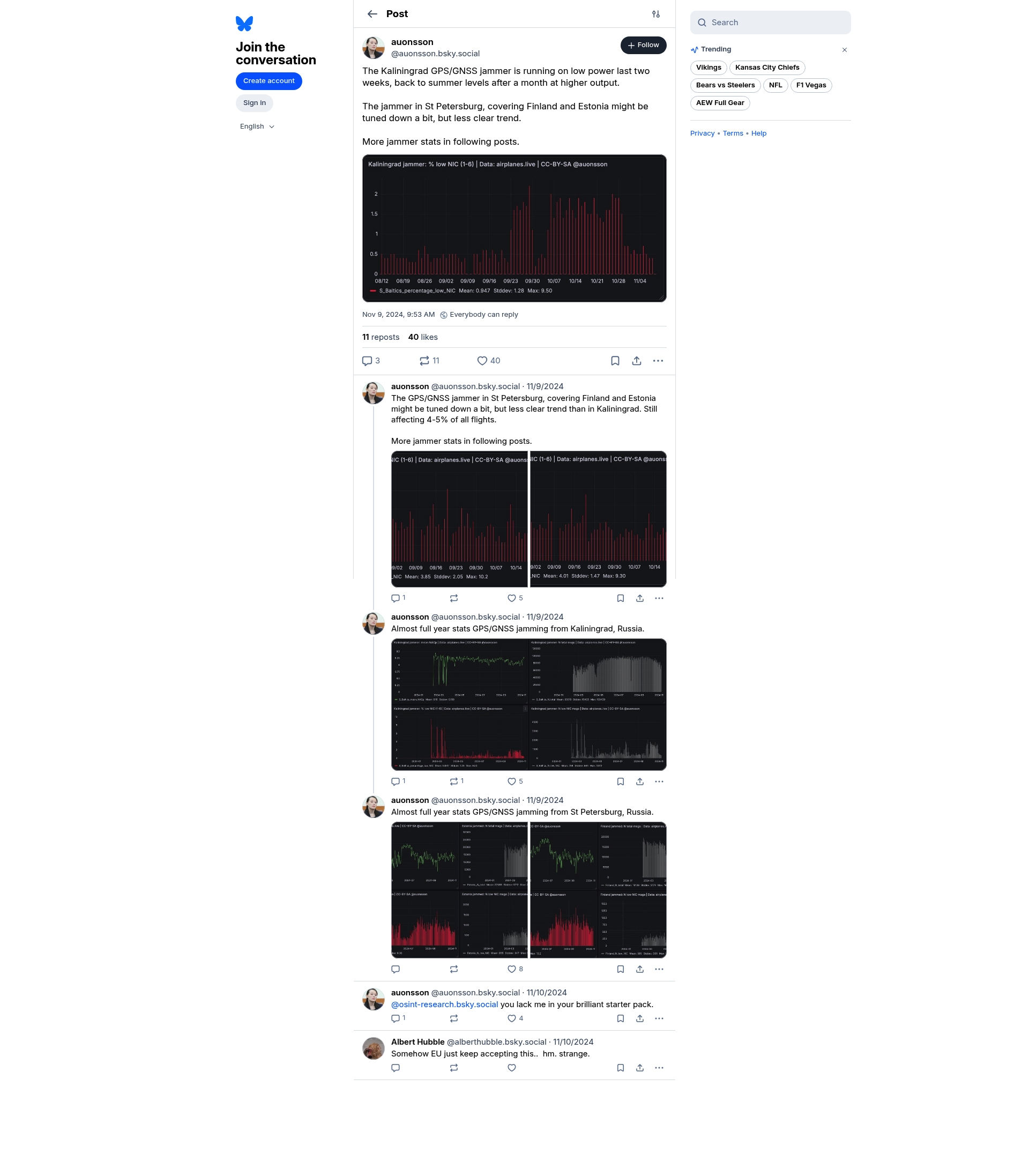 - "Almost full year stats GPS/GNSS jamming from St Petersburg, Russia."