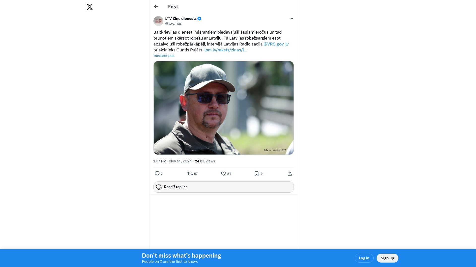 - "Tā Latvijas robežsargiem esot apgalvojuši robežpārkāpēji, intervijā Latvijas Radio sacīja @VRS_gov_lv priekšnieks Guntis Pujāts."