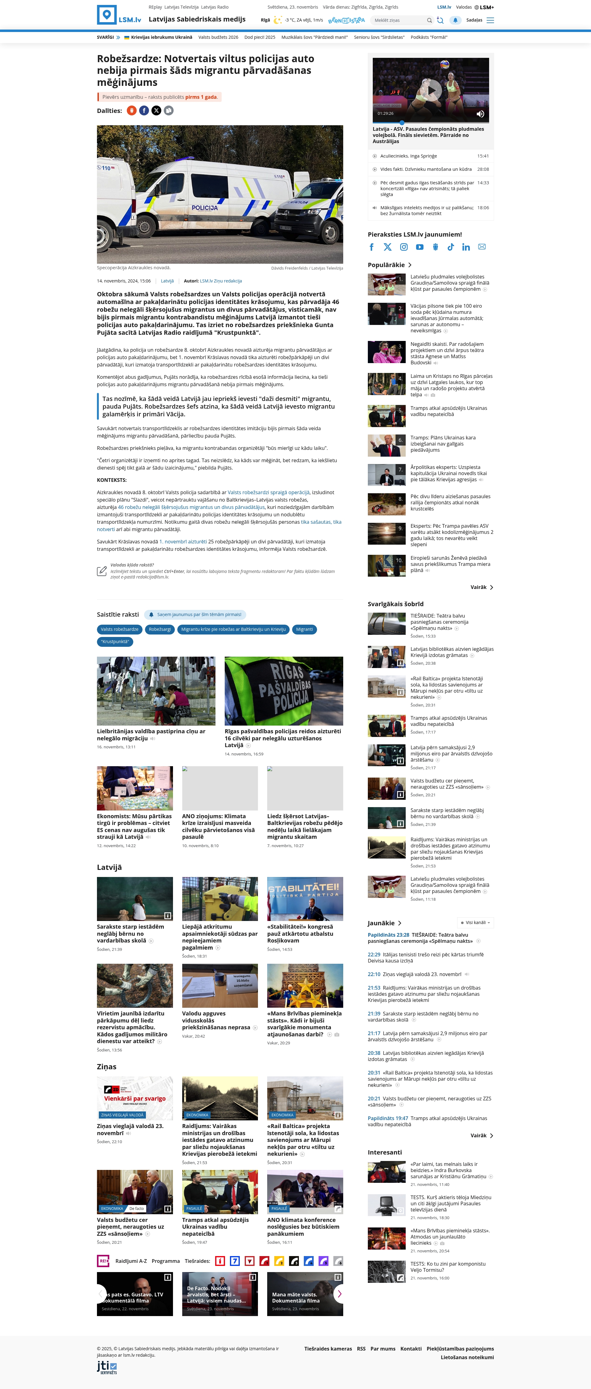 - "Oktobra sākumā Valsts robežsardzes un Valsts policijas operācijā notvertā automašīna ar pakaļdarinātu policijas identitātes izkārtojumu, kas pārvadāja 46 migrantus, nebija pirmais šāds gadījums."