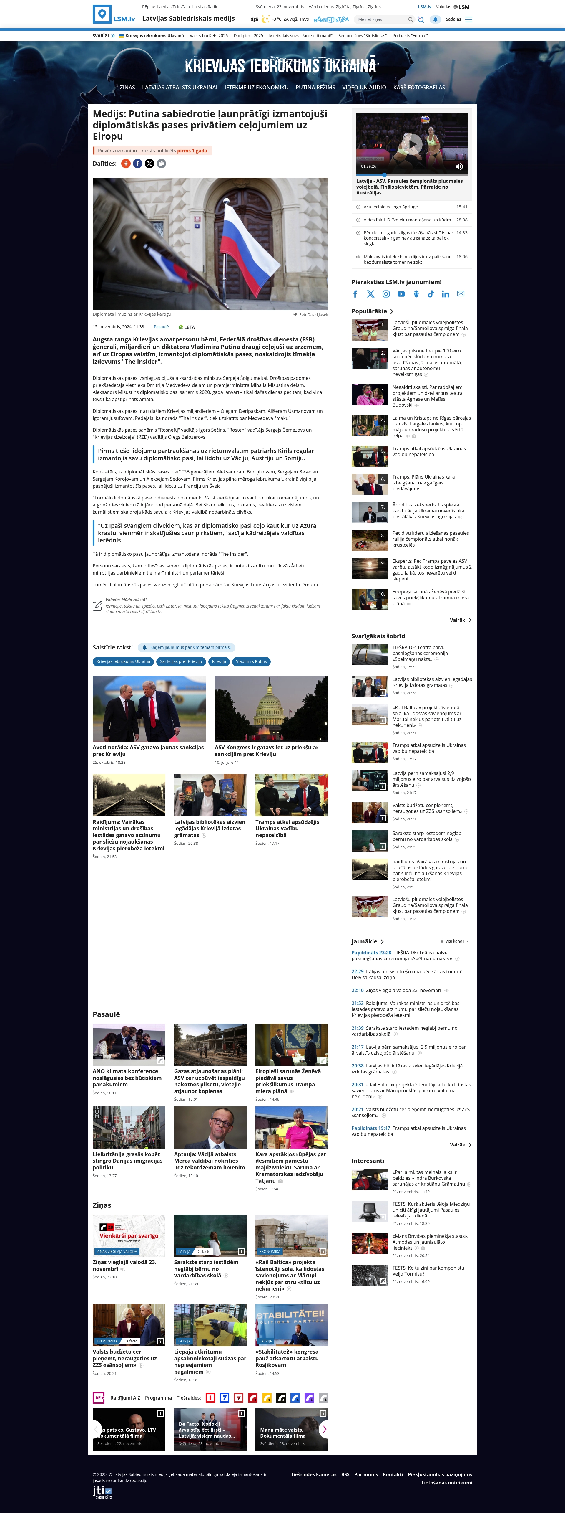 Headline: Medijs: Putina sabiedrotie ļaunprātīgi izmantojuši diplomātiskās pases privātiem ceļojumiem uz Eiropu