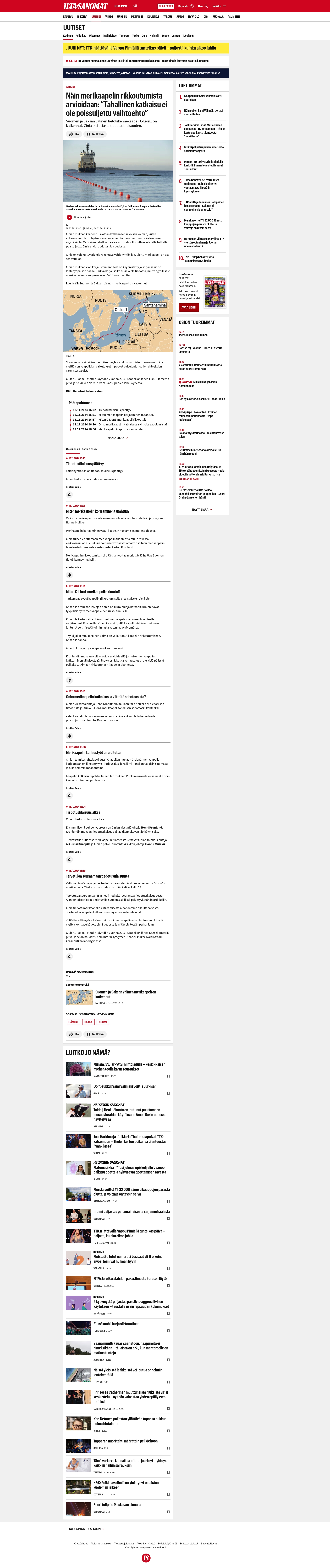Headline: Näin merikaapelin rikkoutumista arvioidaan: ”Tahallinen katkaisu ei ole poissuljettu vaihtoehto”