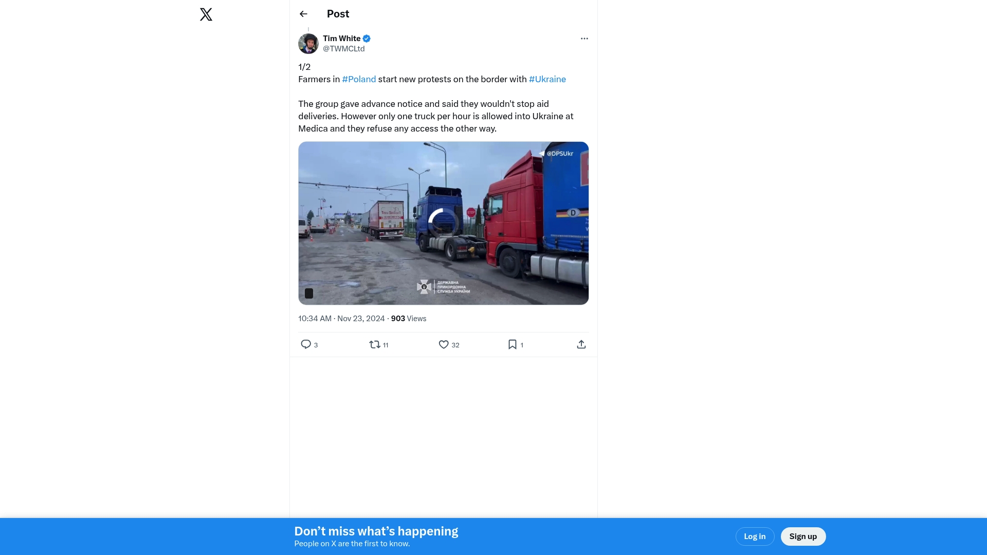 - "Farmers in #Poland start new protests on the border with #Ukraine"