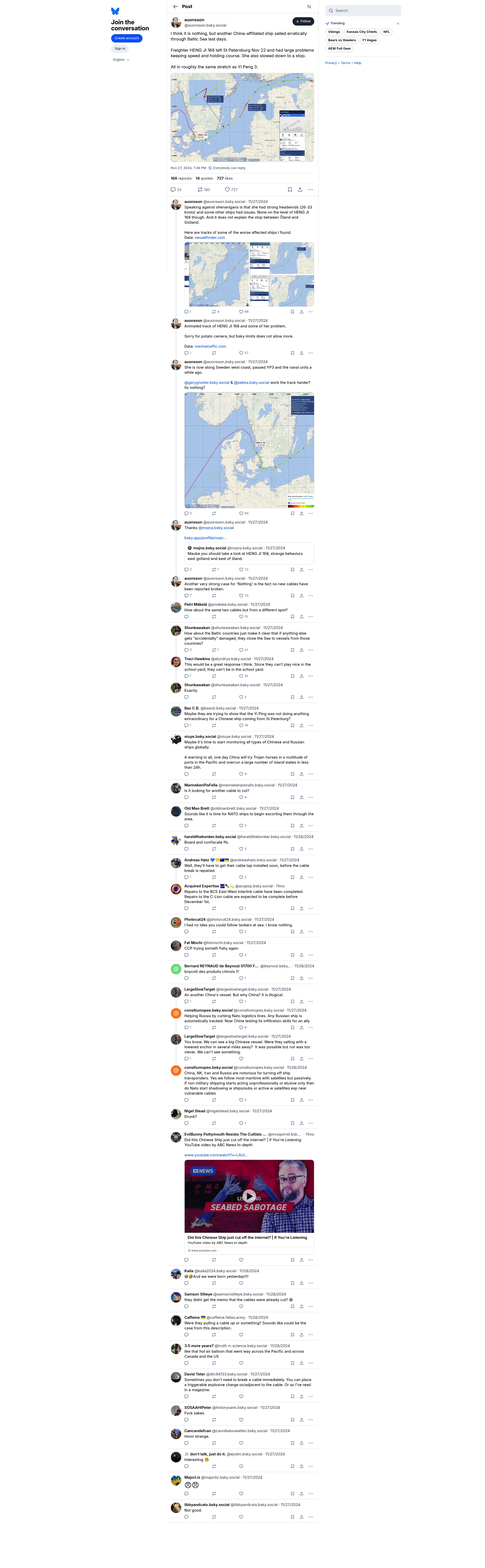 - ""another China-affiliated ship sailed erratically through Baltic Sea last days. Freighter HENG JI 168 left St Petersburg Nov 22 and had large problems keeping speed and holding course. She also slowed..."