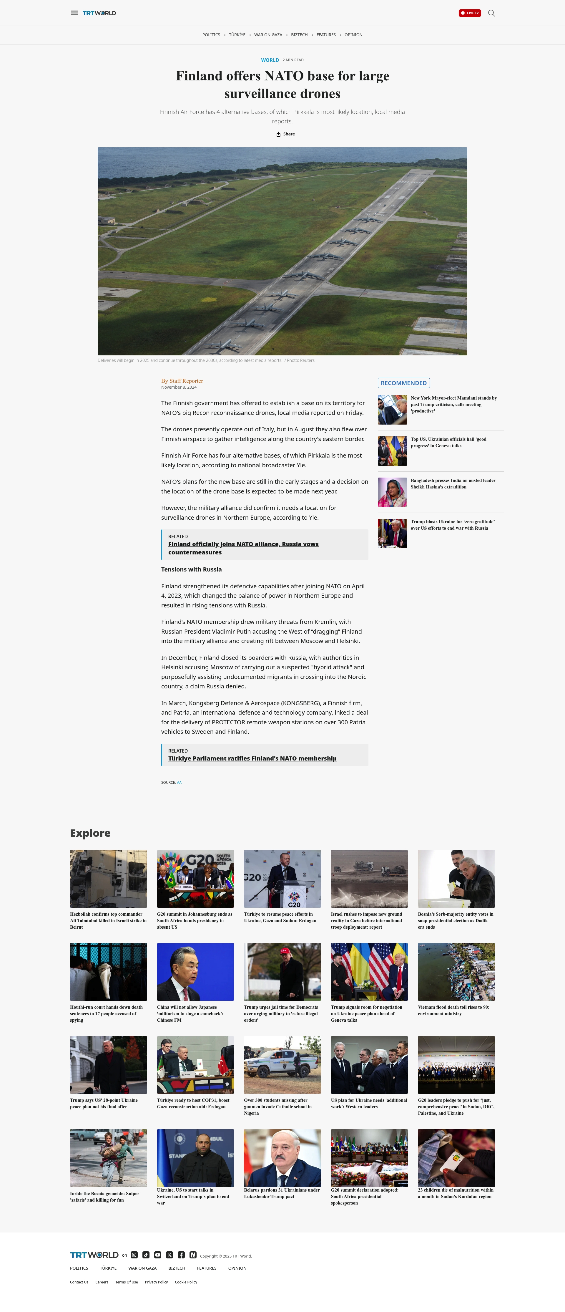 Notes: ??Finland offers NATO base for large surveillance drones (TRTWorld)