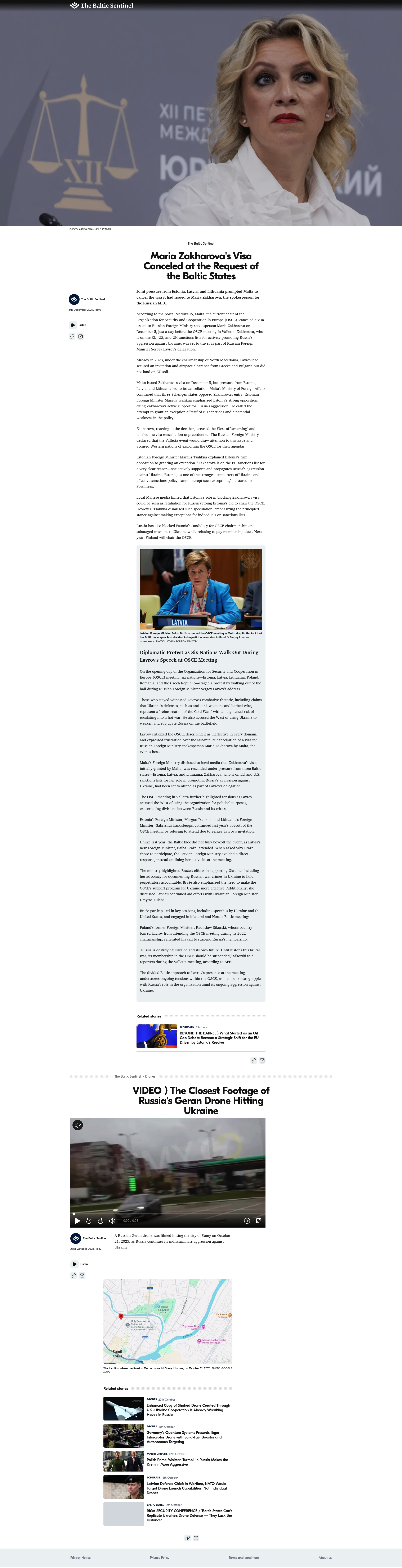 Short Summary: Russian official Maria Zakharova's visa canceled at the joint request of the Baltic states.