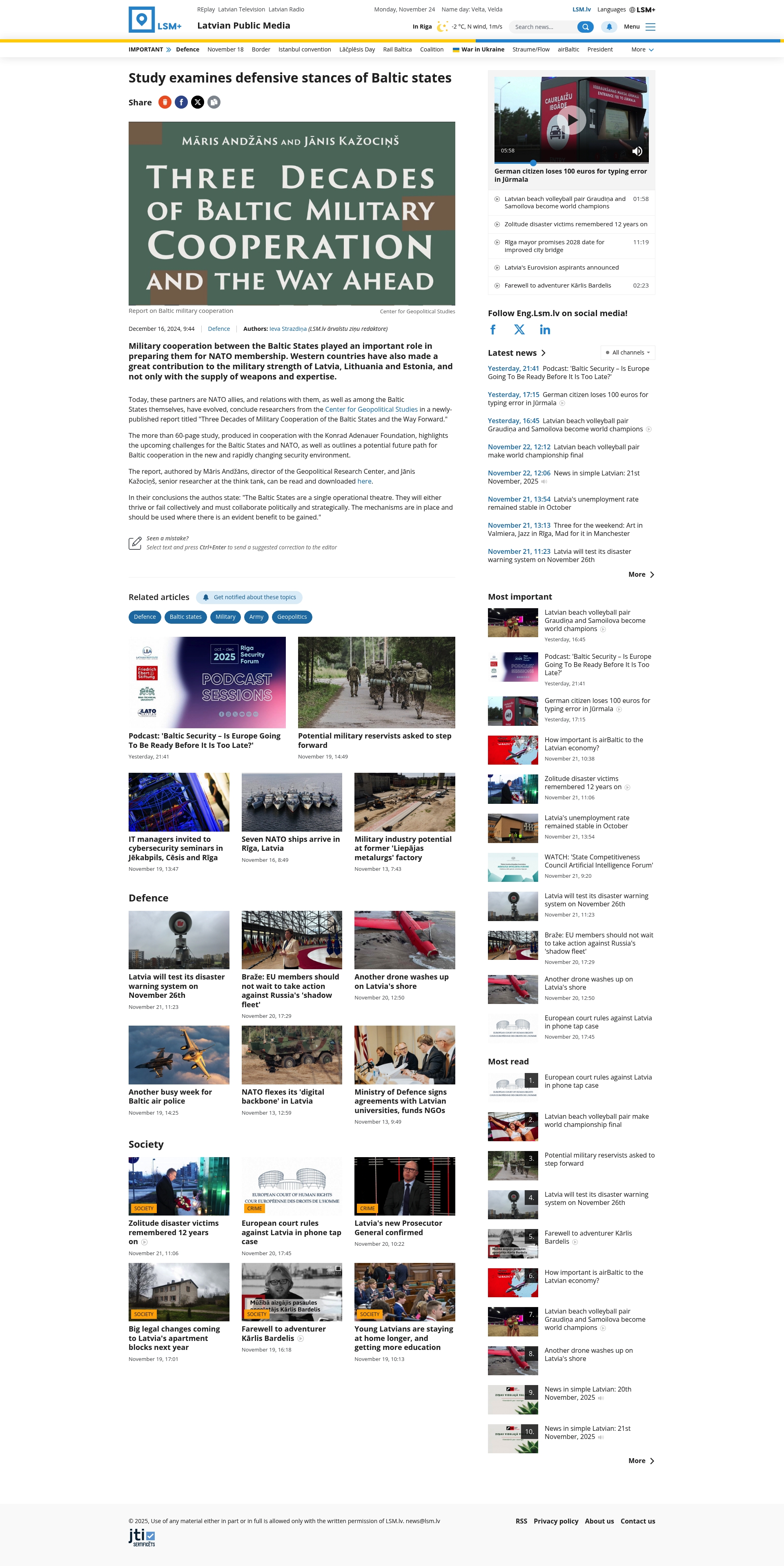 - "The report, authored by Māris Andžāns, director of the Geopolitical Research Center, and Jānis Kažociņš, looks at the outlook for continued regional defense and allied cooperation."
