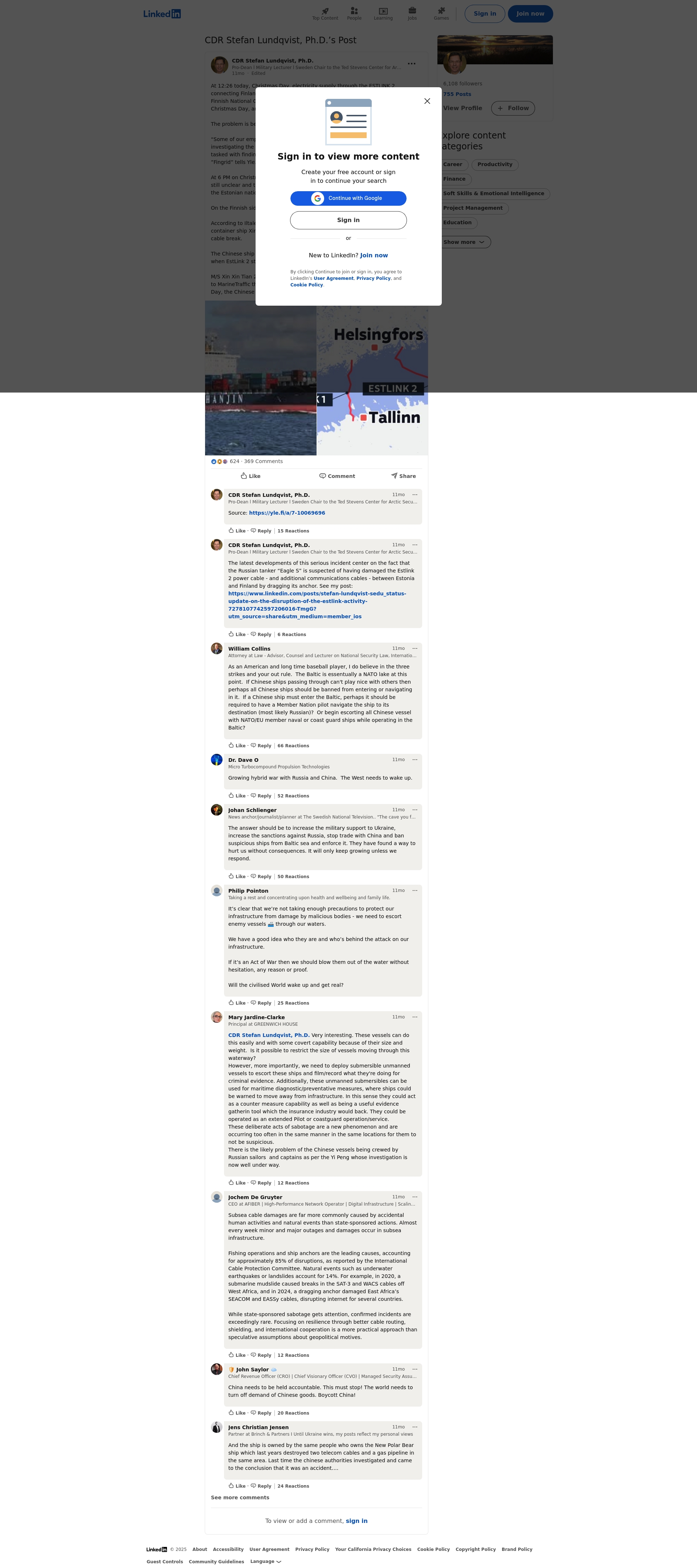 - "The latest developments of this serious incident center on the fact that the Russian tanker 'Eagle S' is suspected of having damaged the Estlink 2 power cable - and additional communications cables - ..."
