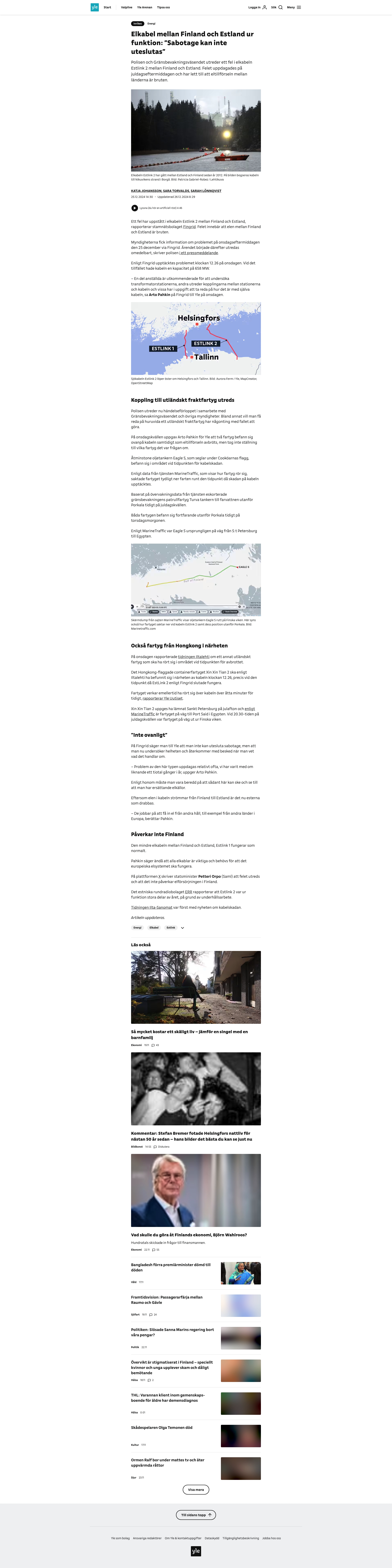 - "Elkabel mellan Finland och Estland ur funktion: 'Sabotage kan inte uteslutas'"