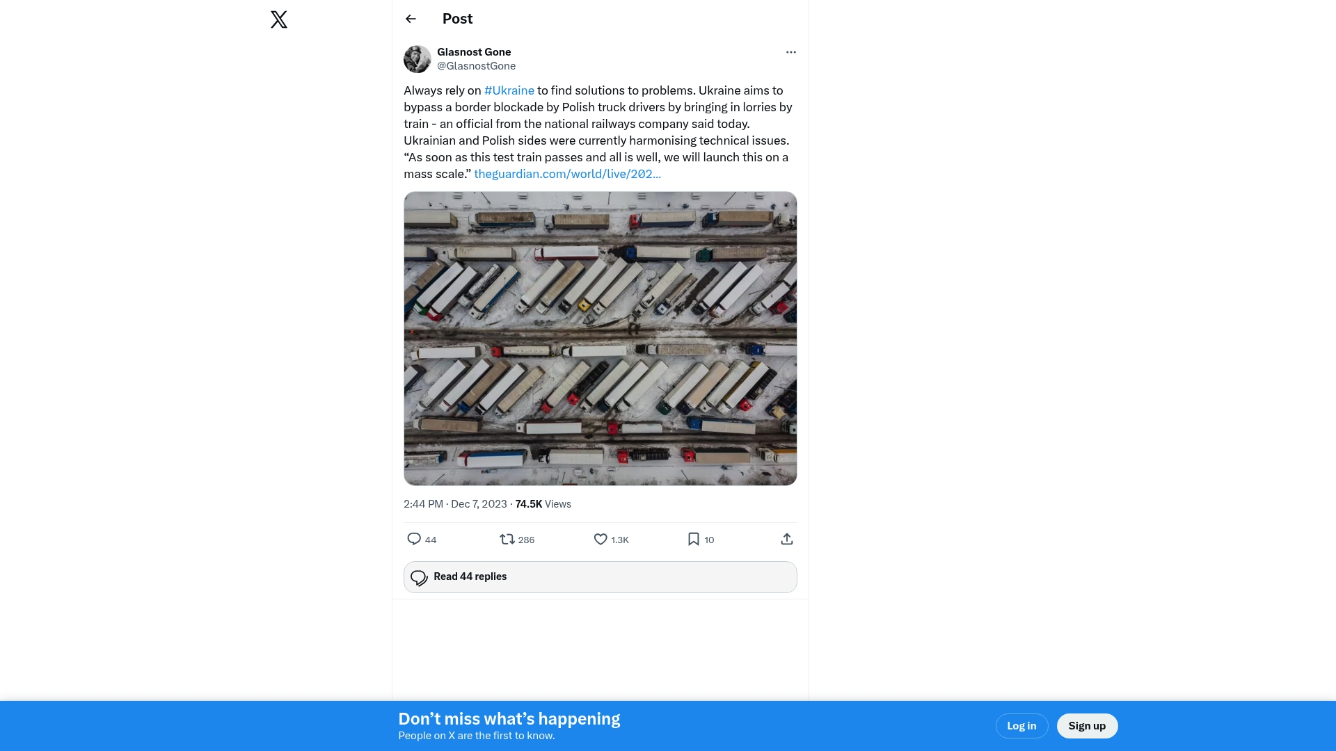 ????Truck Blockade into Ukraine Continues. Some Trucks entering by Rail. Always rely on #Ukraine to find solutions to problems. Ukraine aims to bypass a border blockade by Polish truck drivers by bringing in lorries by train - an official from the national railways company said today. Ukrainian and Polish sides were currently harmonising technical issues. As soon as this test train passes and all is well, we will launch this on a mass scale.