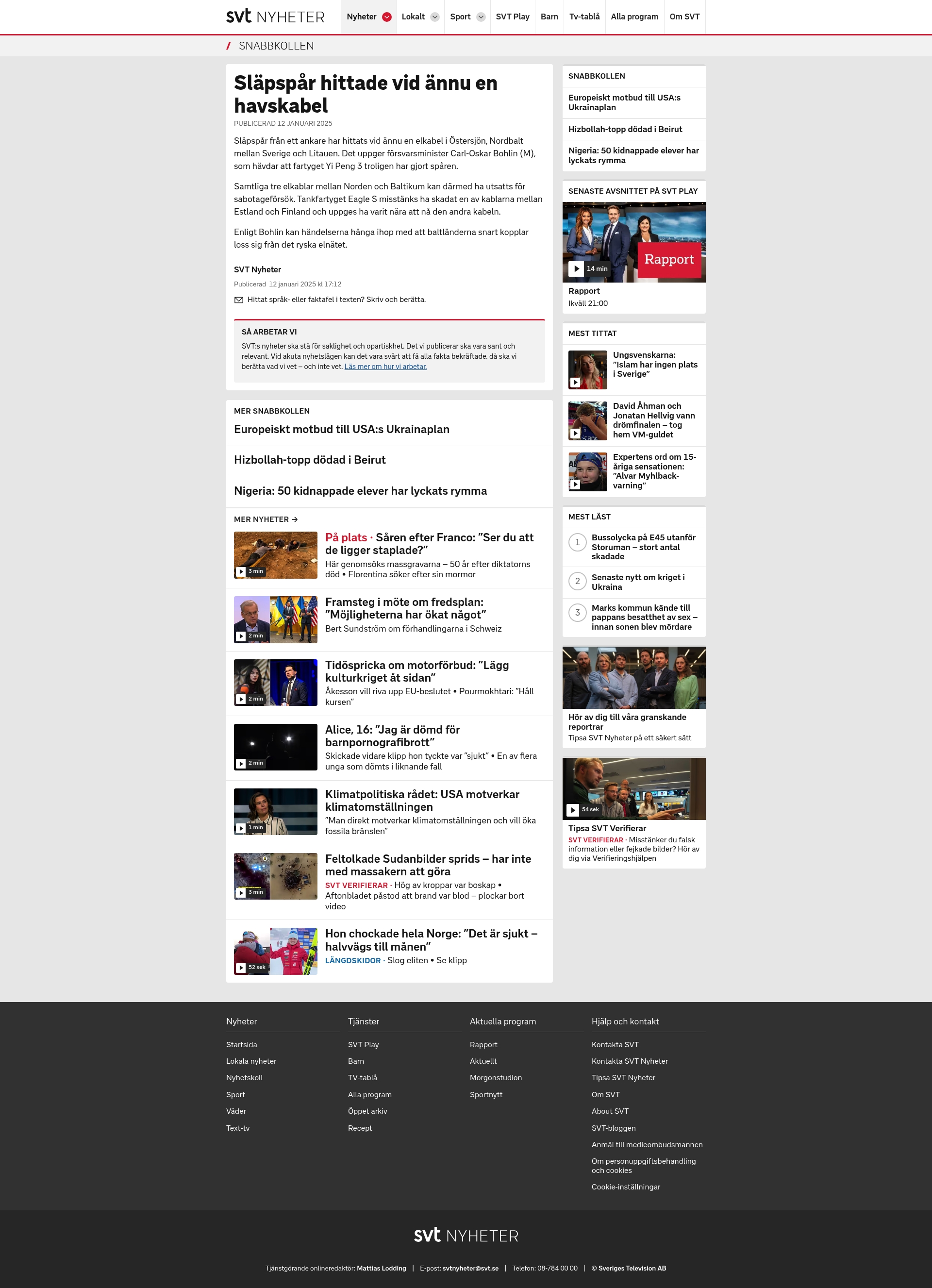 - "Samtidigt tre elkablar mellan Norden och Baltikum som klarnat hade nu utsatts för sabotageförsök."