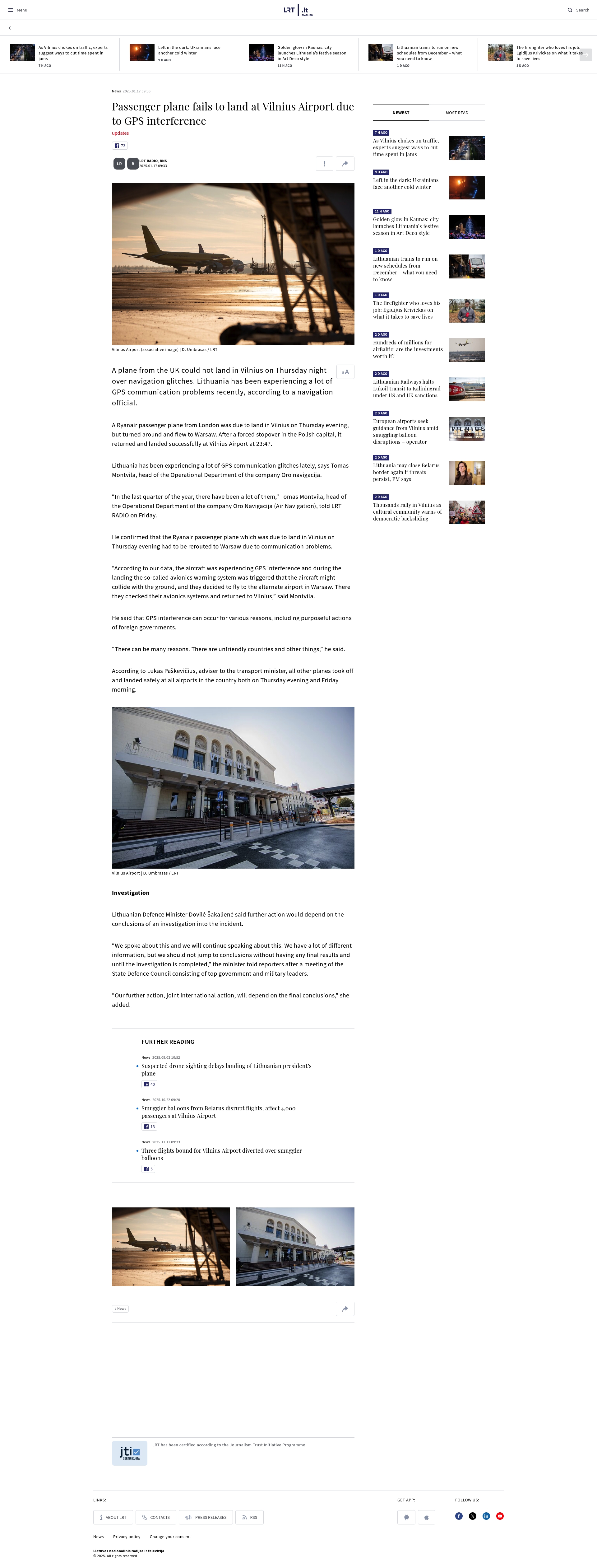Headline: Passenger plane fails to land at Vilnius Airport due to GPS interference
