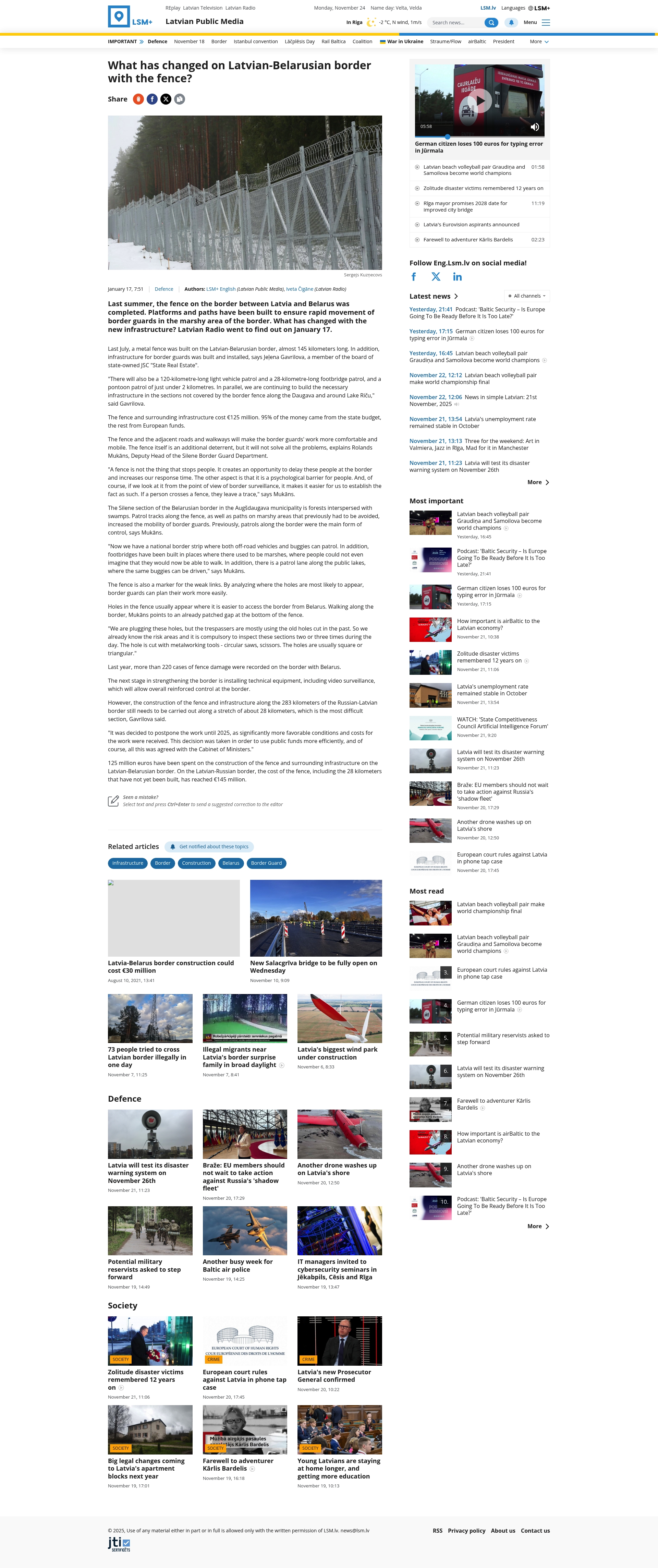 Headline: What has changed on Latvian-Belarusian border with the fence?