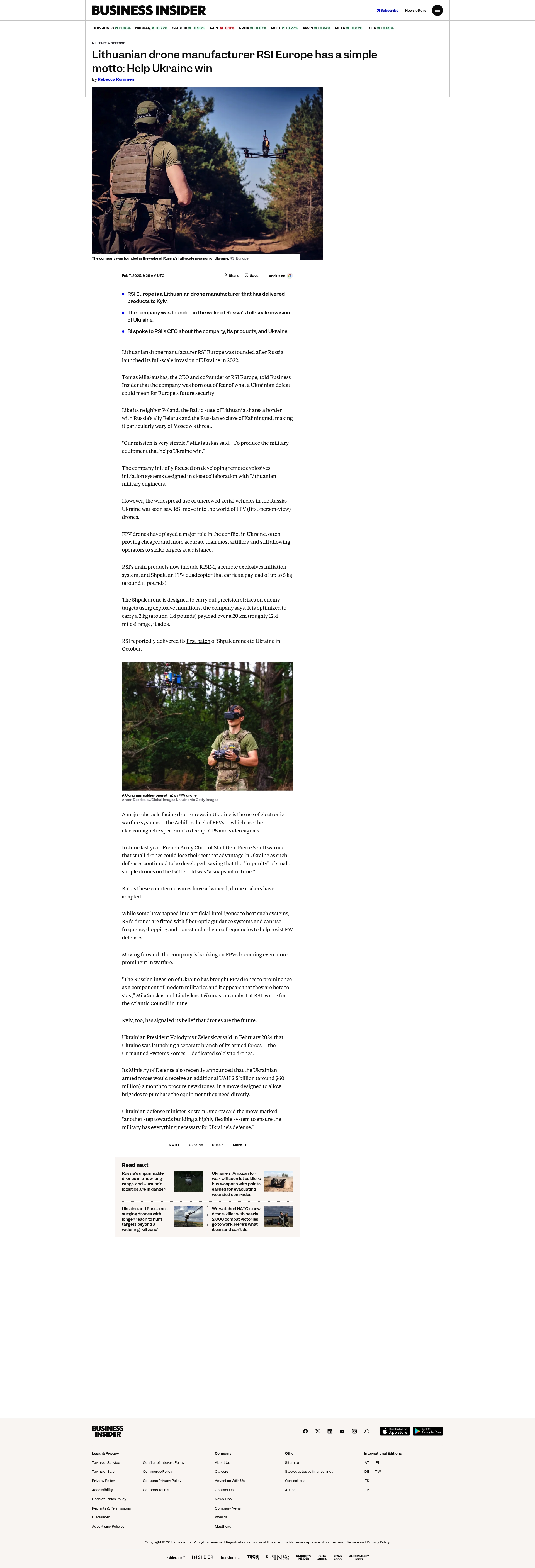 - ""RSI Europe is a Lithuanian drone manufacturer that has delivered products to Kyiv.""