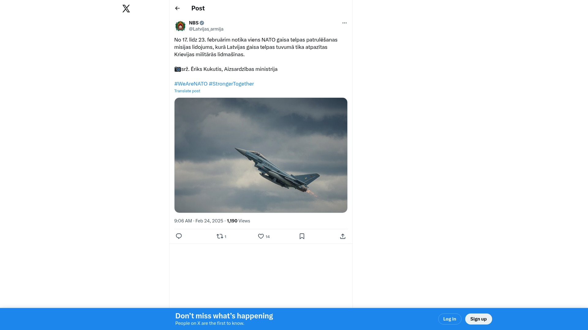 - "No 17. līdz 23. februārim notika viens NATO gaisa telpas patrulēšanas misijas lidojums, kurā Latvijas gaisa telpas tuvumā tika atpazītas Krievijas militārās lidmašīnas."