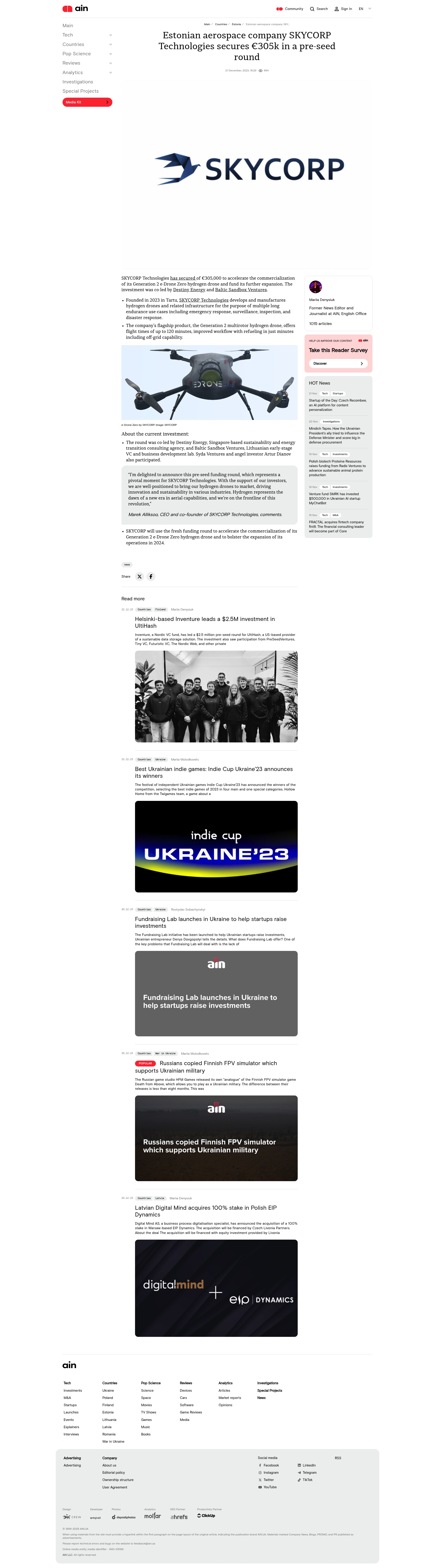 - "Estonian aerospace company SKYCORP Technologies secures €305k in a pre-seed round."