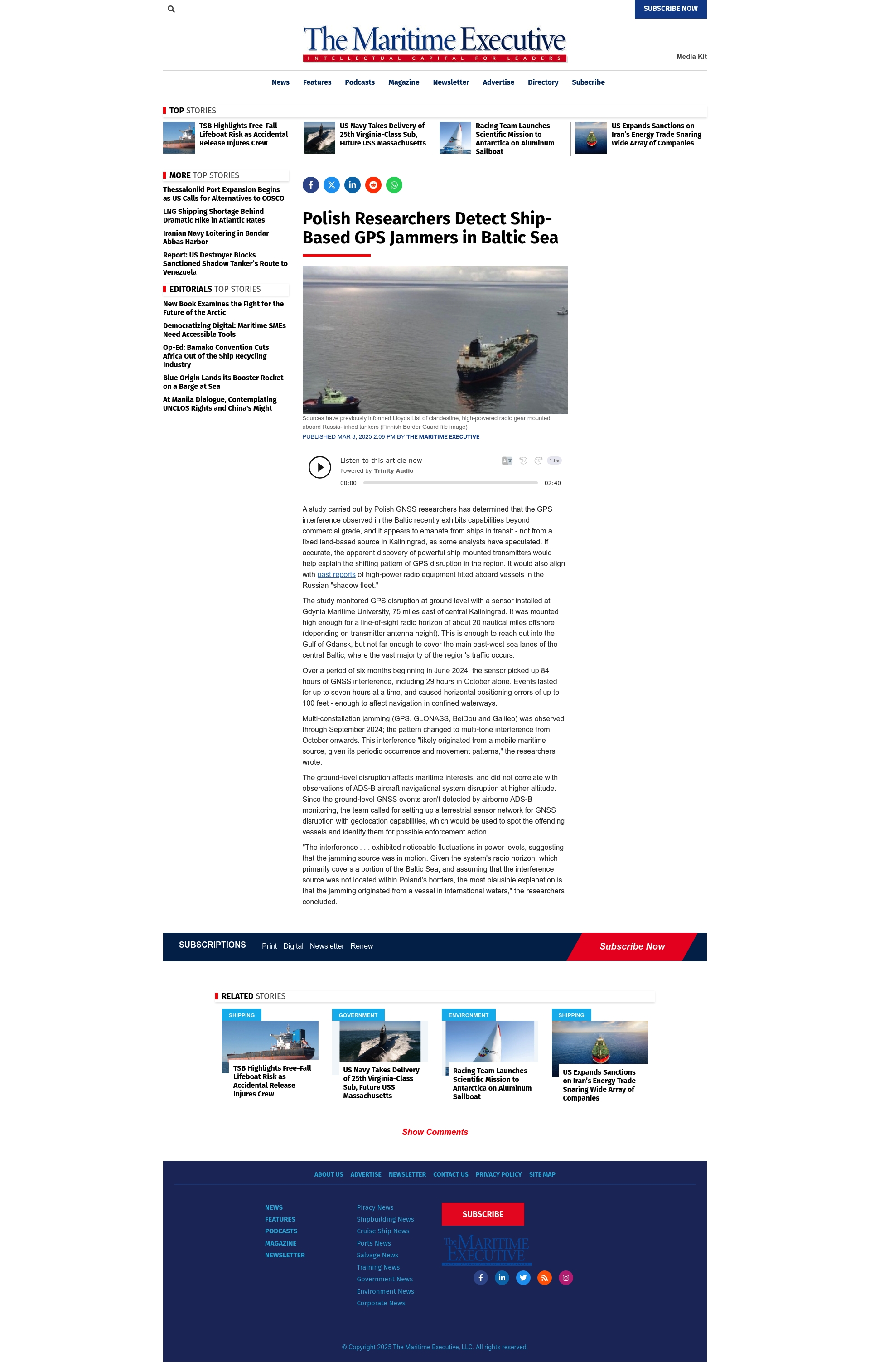 Headline: Polish Researchers Detect Ship-Based GPS Jammers in Baltic Sea