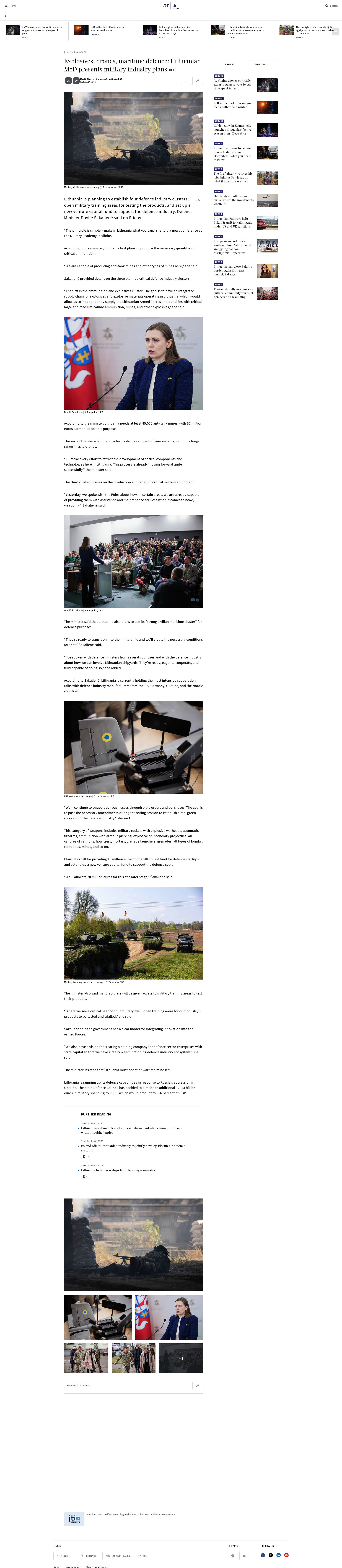 Headline: Explosives, drones, maritime defence: Lithuanian MoD presents military industry plans