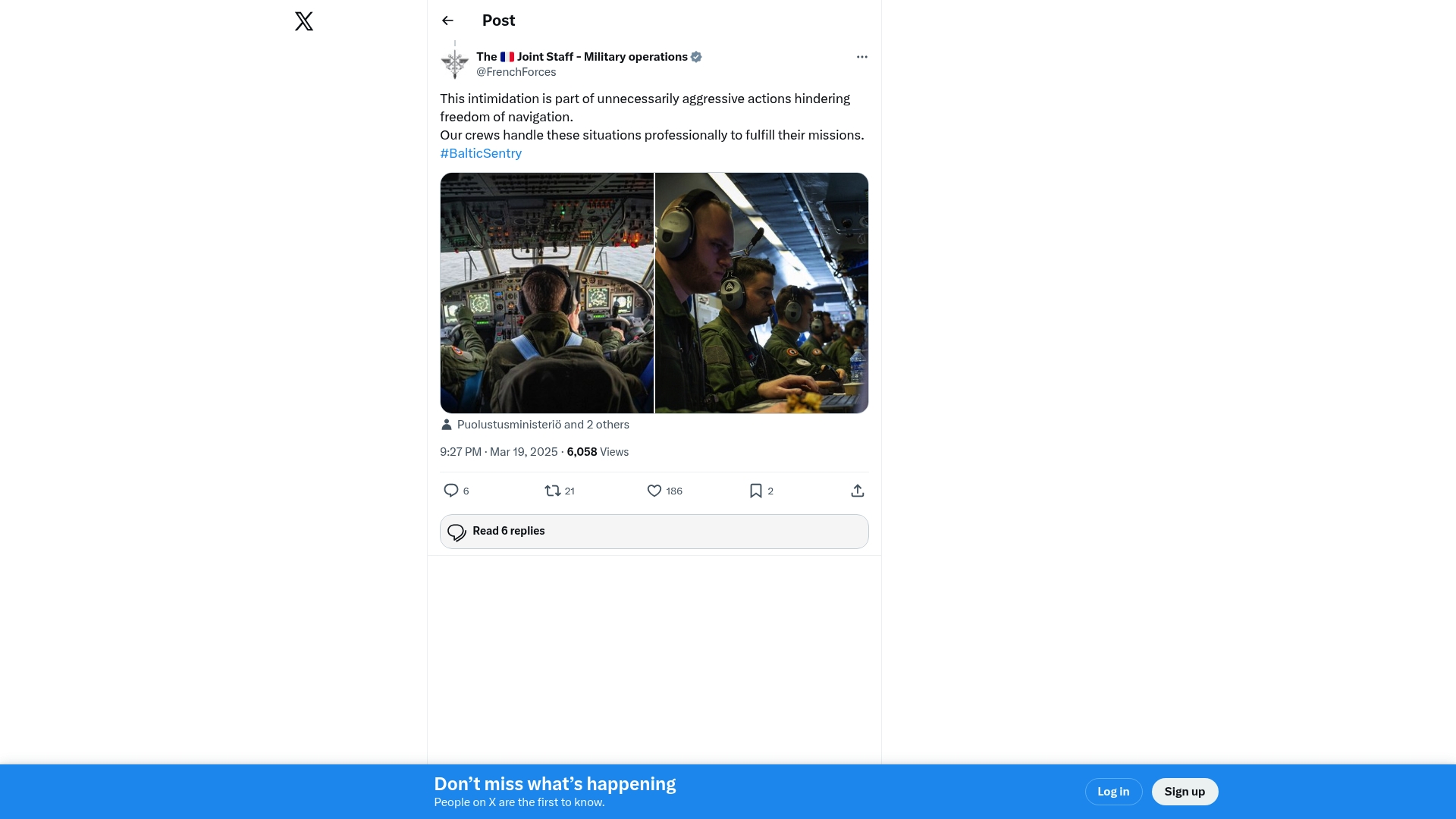 Short Summary: French military denounces aggressive intimidation impacting navigation freedom in the Baltic Sentry operation.