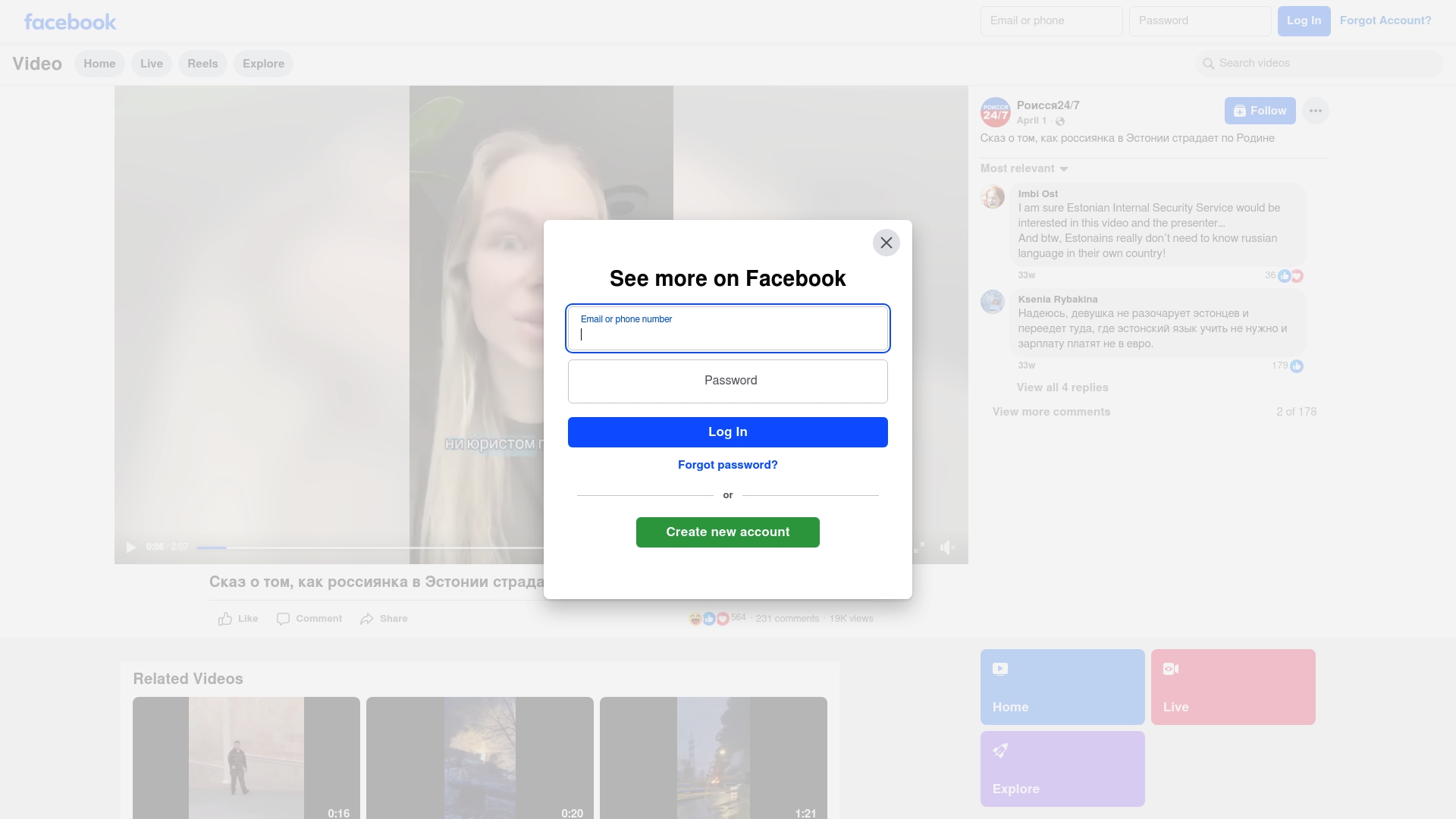"description": "A Russian-language page shared a video titled 'Сказ о том, как россиянка в Эстонии страдает от Родине' (Tale about how a Russian woman in Estonia suffers from the homeland), presenting the narrative of a Russian-speaking individual experiencing difficulties in Estonia. The post is accompanied by comments referencing language and integration issues in Estonia. The nature and phrasing imply a narrative positioning Estonia as unwelcoming or discriminatory toward Russian speakers, regularly referenced in Russian state-aligned information operations targeting Estonia and other Baltic states.",