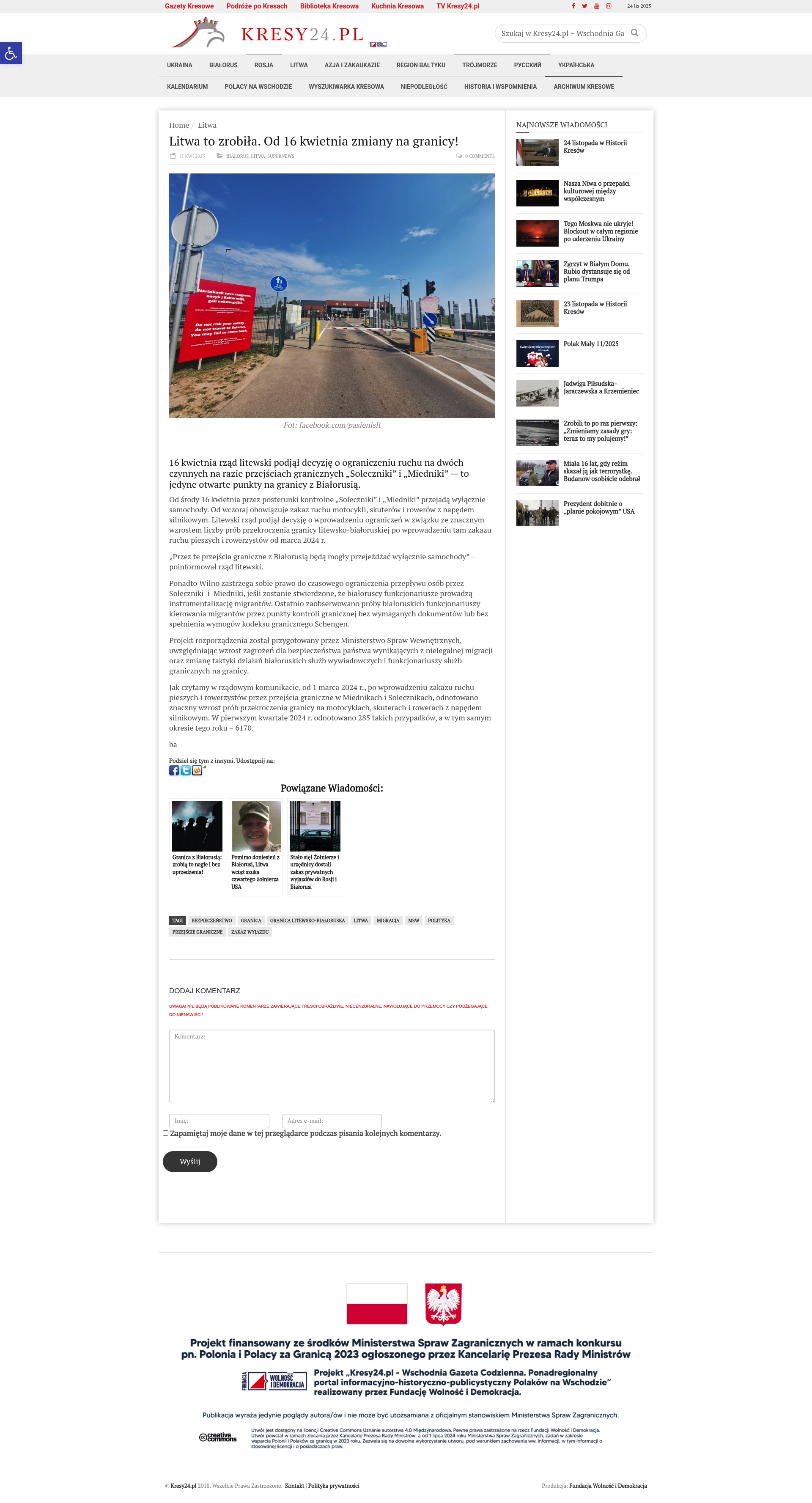 Headline: Litwa to zrobiła. Od 16 kwietnia zmiany na granicy!