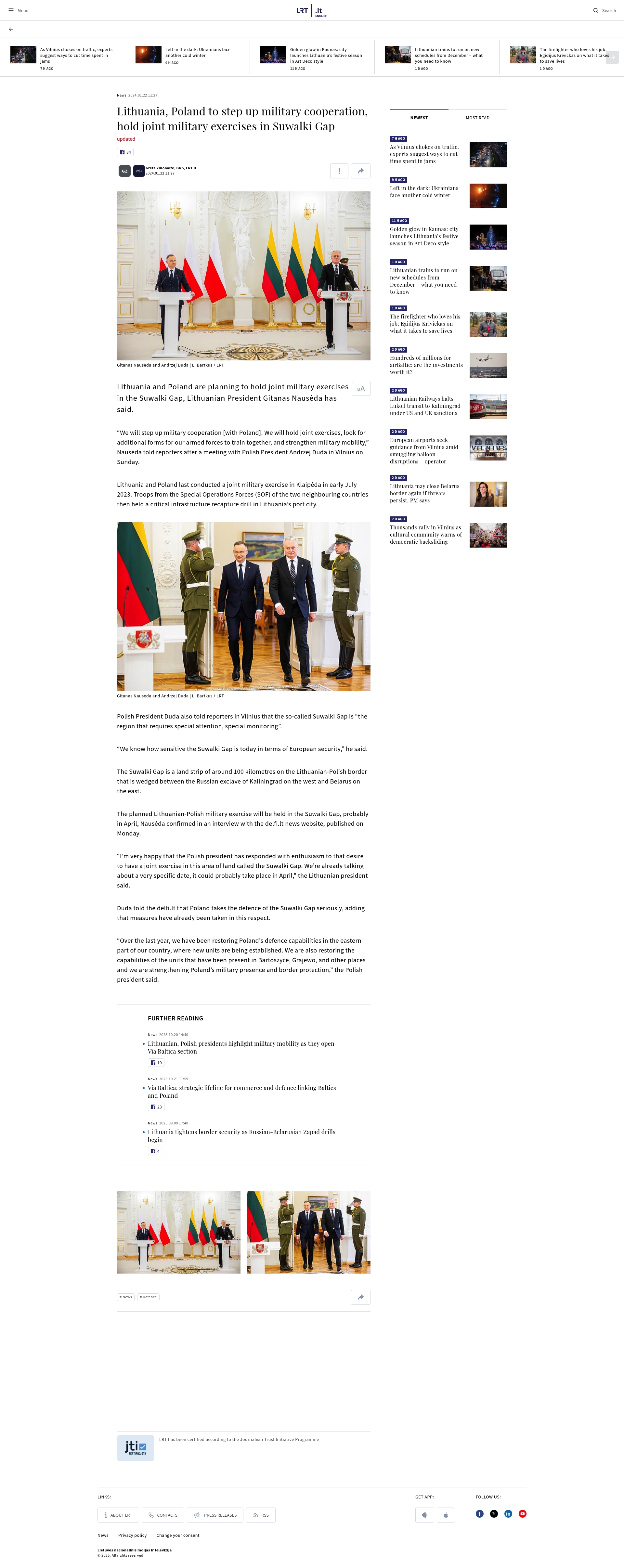 - "Lithuania and Poland are planning to hold joint military exercises in the Suwalki Gap, Lithuanian President Gitanas Nauseda has said."