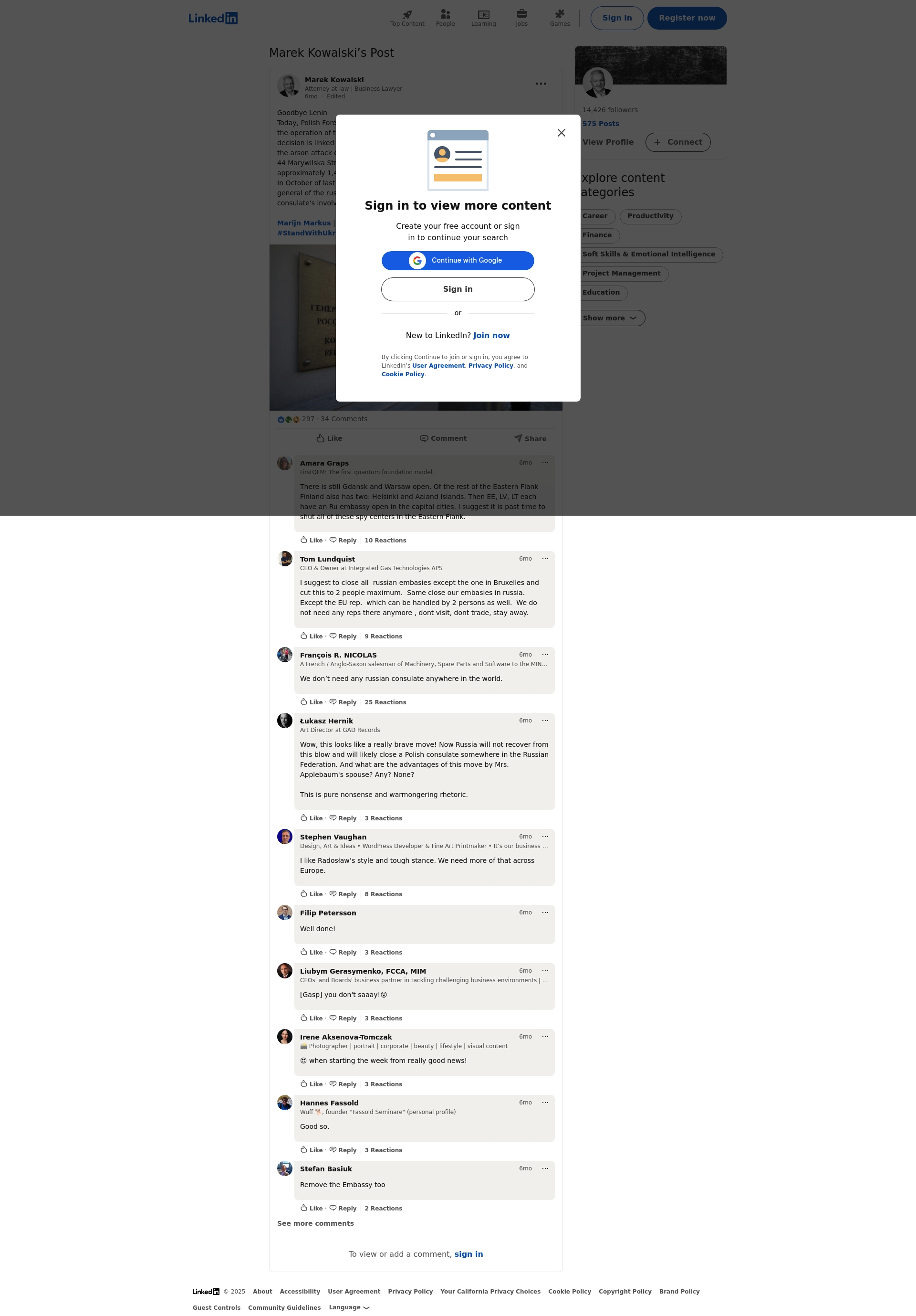 - "In October of last year, Minister Sikorski also ordered the closure of the consulate general of the russian federation in Poznań, following the disclosure of the consulate's involvement in espionage a..."