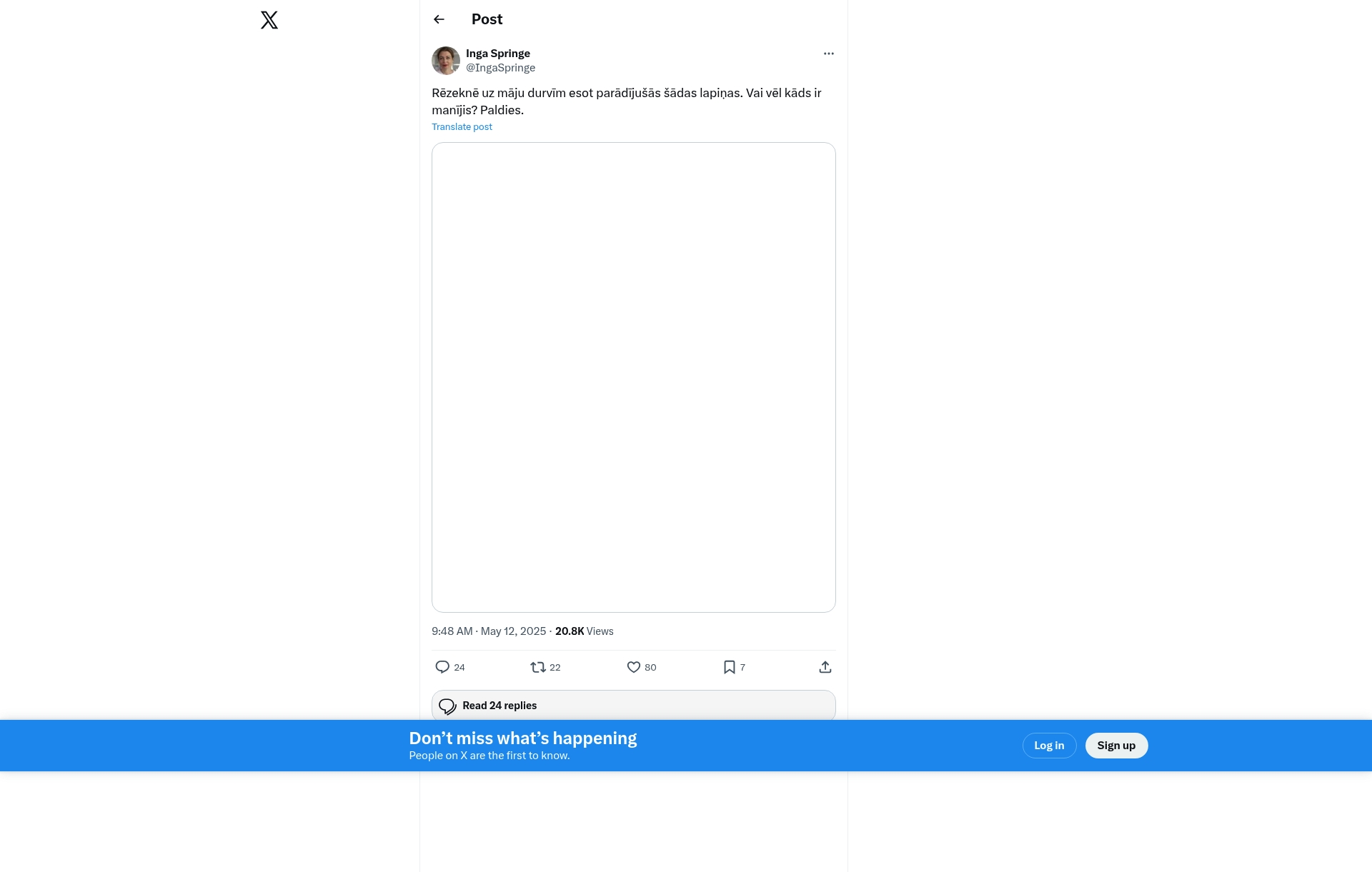 - "Rēzeknē uz māju durvīm esot parādījušās šādas lapiņas. Vai vēl kāds ir manījis? Paldies."