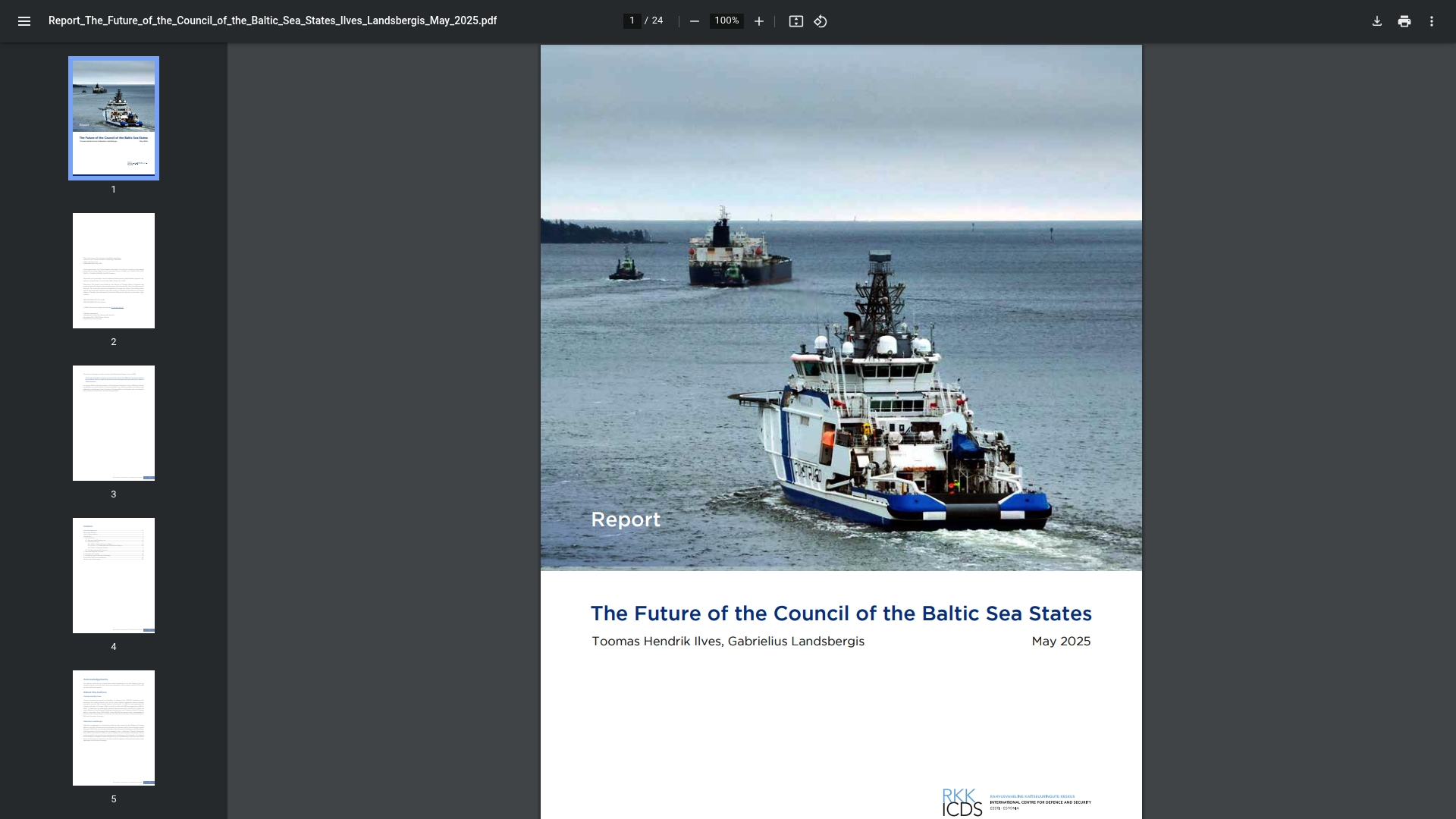 Short Summary: A policy report evaluating the future and security priorities of the Council of the Baltic Sea States as of May 2025.