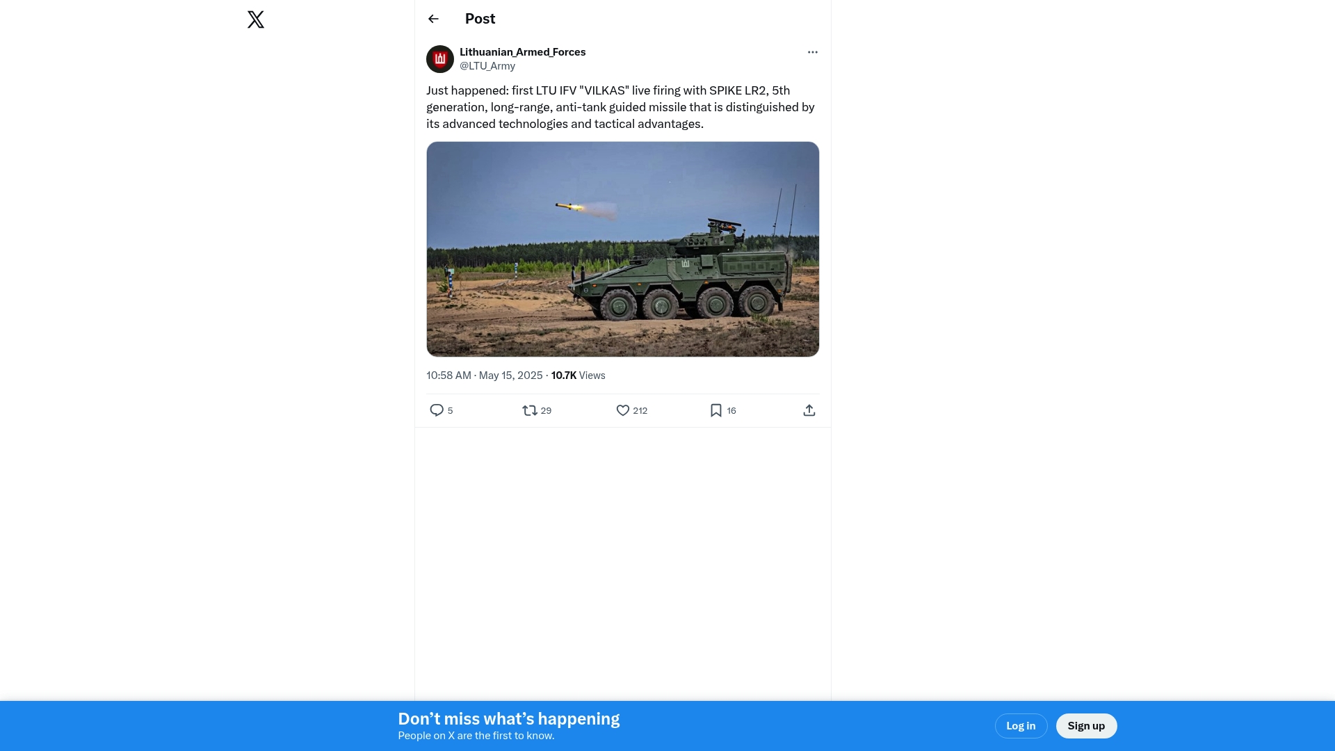 - "Just happened: first LTU IFV "VILKAS" live firing with SPIKE LR2, 5th generation, long-range, anti-tank guided missile that is distinguished by its advanced technologies and tactical advantages."