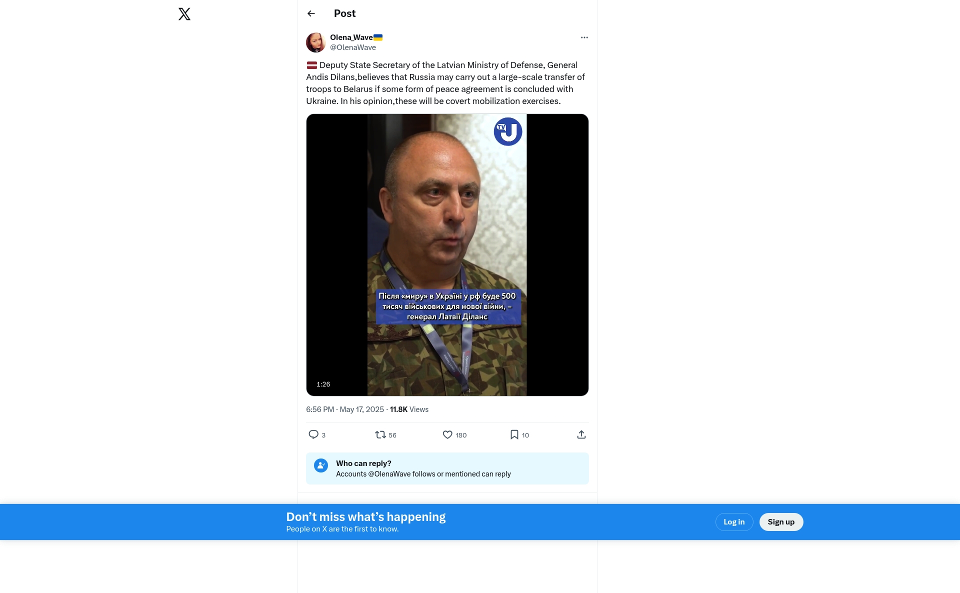 - "Deputy State Secretary of the Latvian Ministry of Defense, General Andis Dilans, believes that Russia may carry out a large-scale transfer of troops to Belarus if some form of peace agreement is concl..."