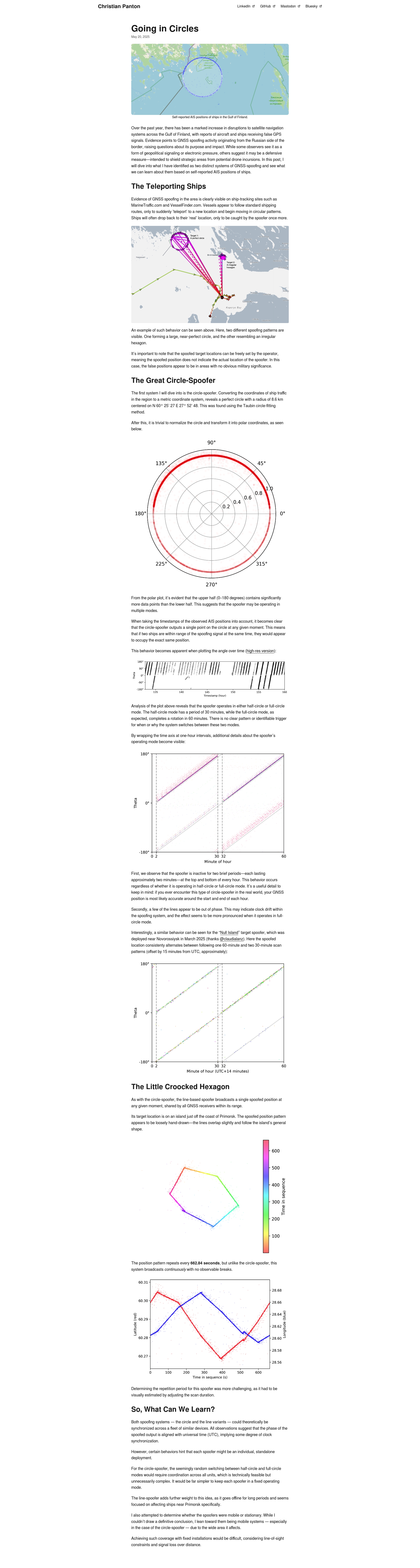 - "Evidence of GNSS spoofing in the area is clearly visible on ship-tracking sites such as MarineTraffic.com and VesselFinder.com. Vessels appear to follow standard shipping routes, only to suddenly βtel..."