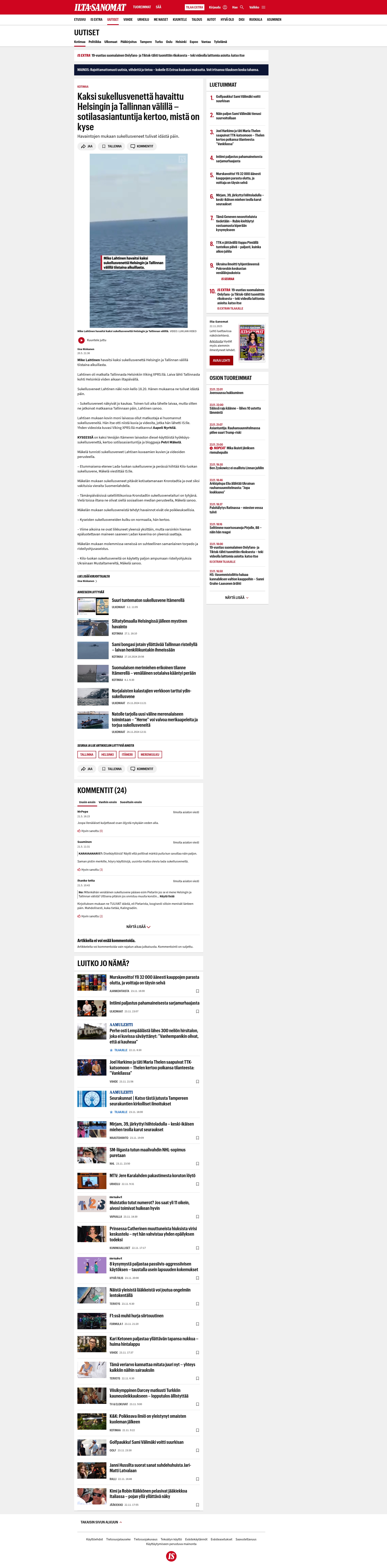 - "Kaksi sukellusvenettä havaittu Helsingin ja Tallinnan välillä"