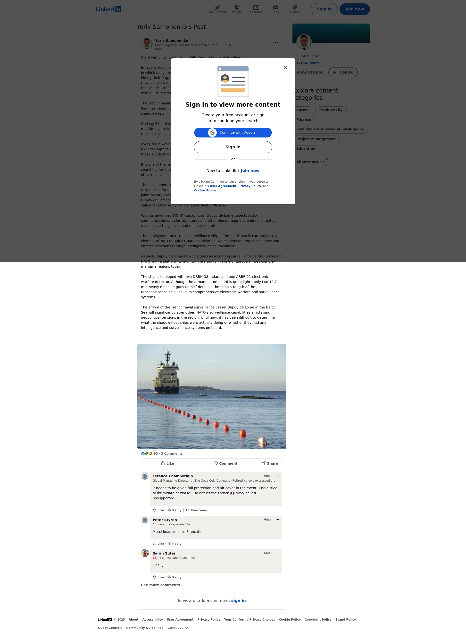 - "Giant French ship arrives in Baltic Sea to fight shadow fleet."