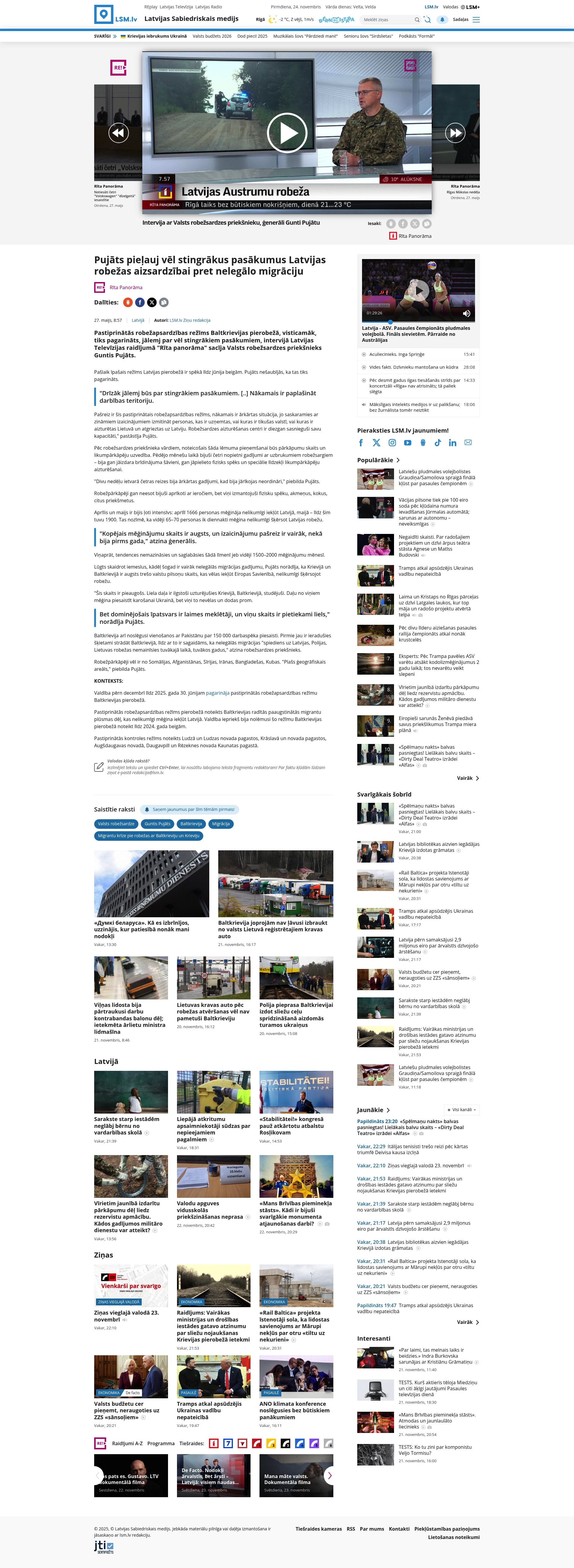 Headline: Pujāts pieļauj vēl stingrākus pasākumus Latvijas robežas aizsardzībai pret nelegālo migrāciju