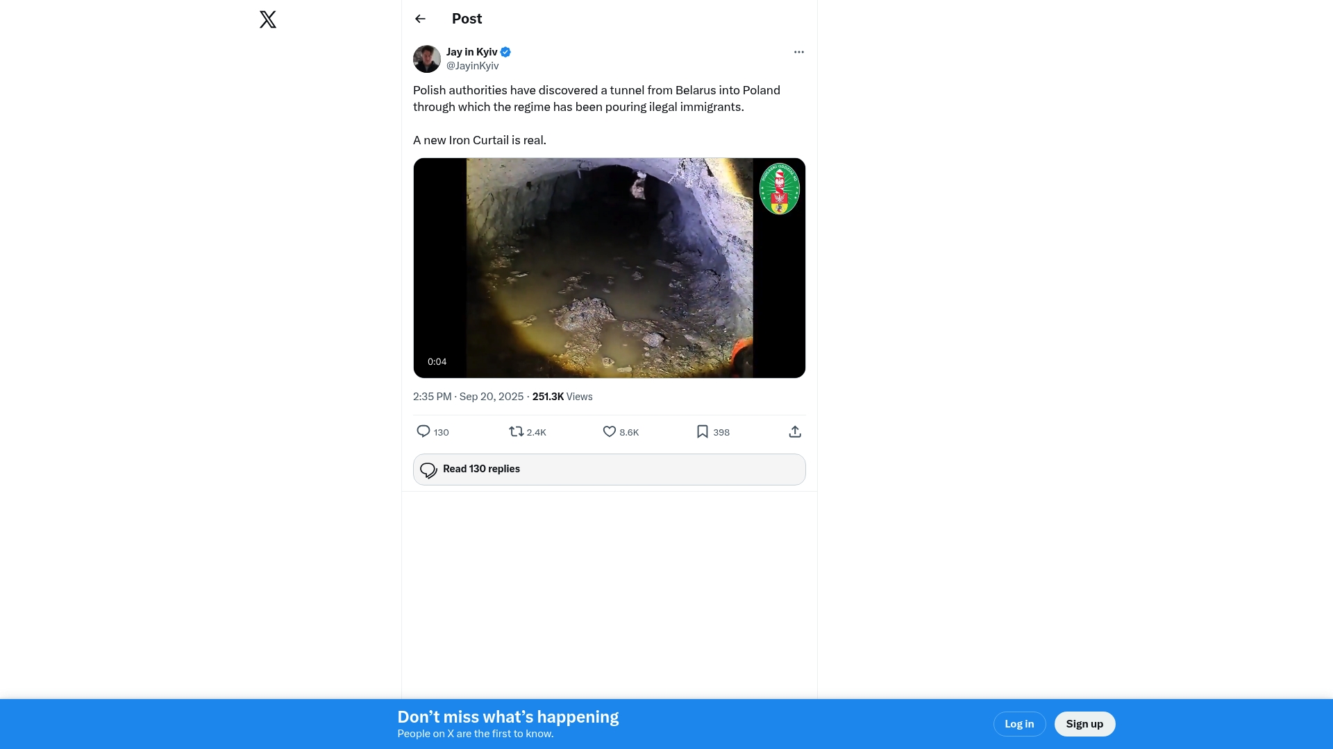 - "Polish authorities have discovered a tunnel from Belarus into Poland through which the regime has been pouring illegal immigrants."