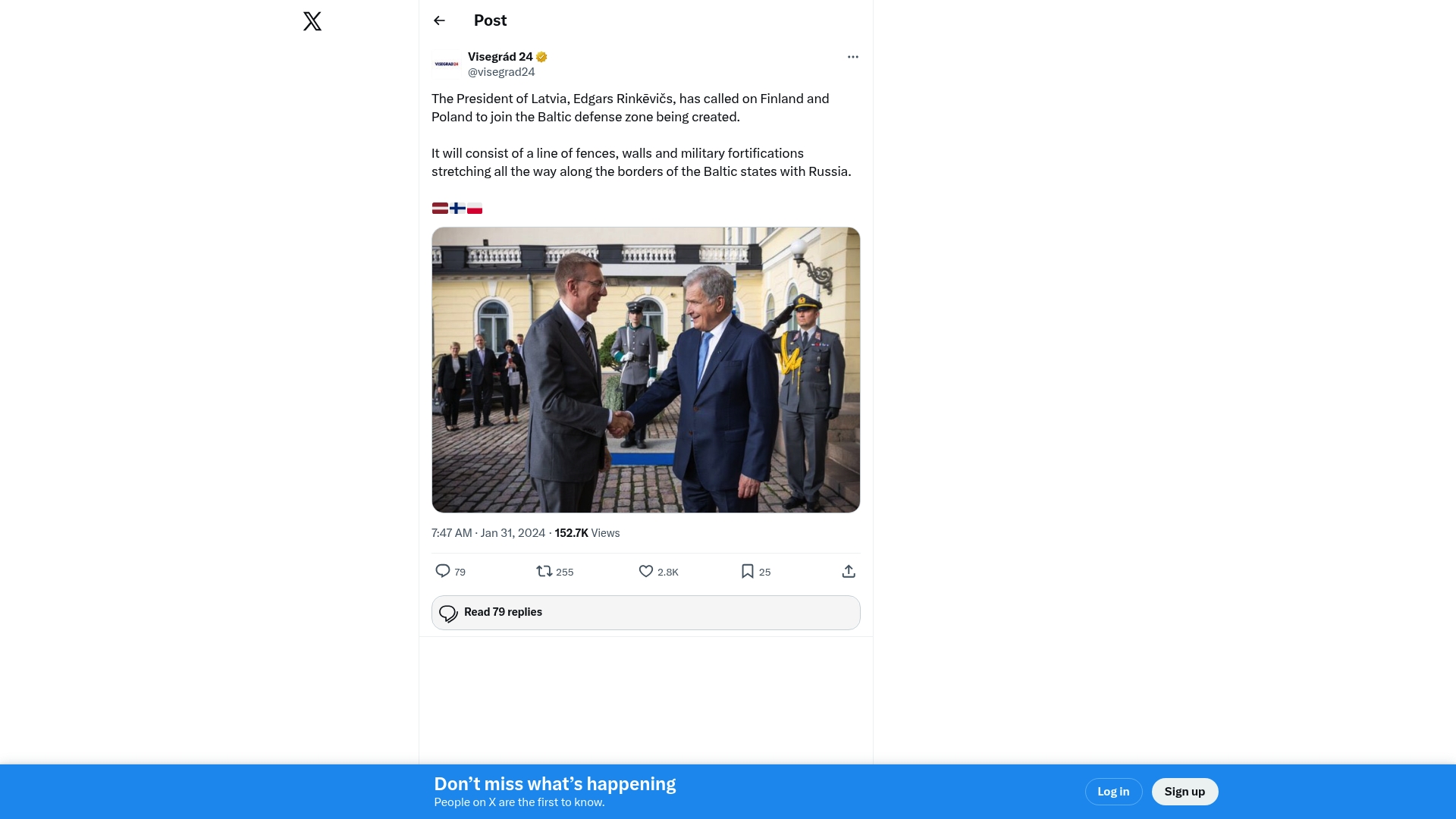 - "The President of Latvia, Edgars Rinkēvičs, has called on Finland and Poland to join the Baltic defense zone being created."