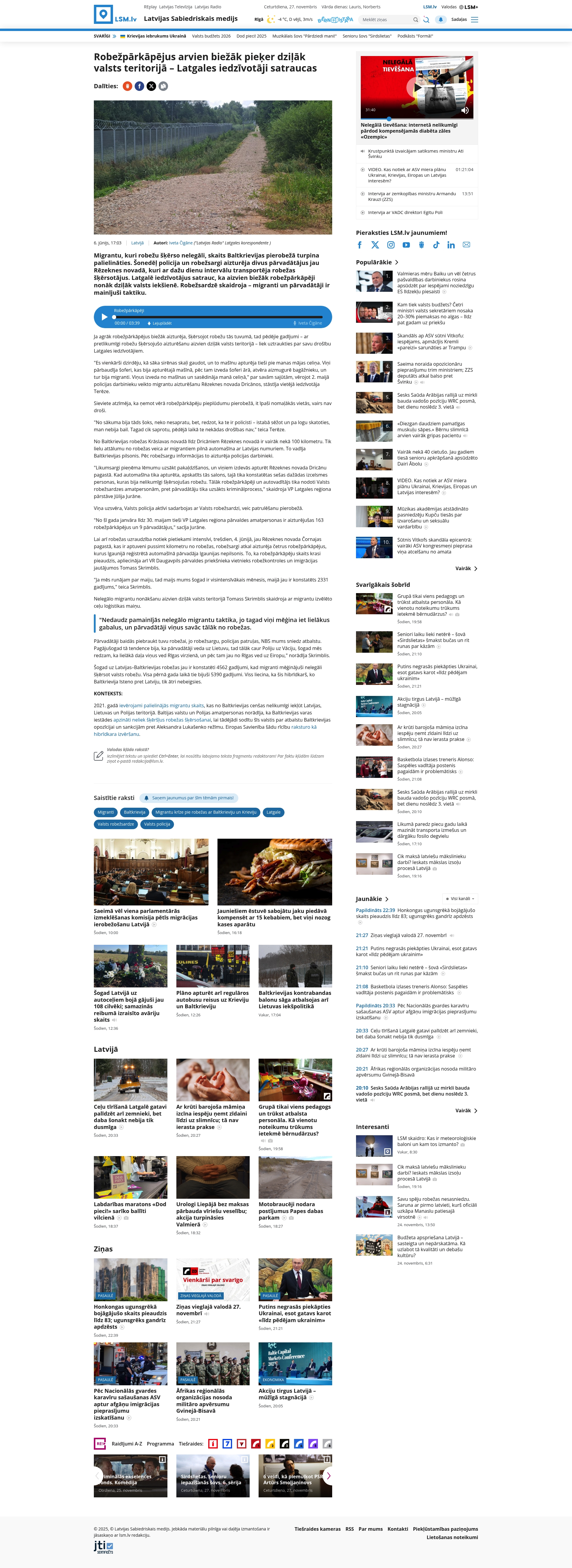 In Latgale, Latvia, illegal border crossers are increasingly being caught deeper inside the country, causing growing concern among local residents. The State Border Guard and police frequently detain migrants and smugglers transporting migrants deeper into Latvia, particularly around Rezekne and Dricani. Residents report sightings further from the border than before, with some apprehended over 30km inside Latvia. Authorities are intensifying patrols including police and military personnel. Since January, Latgale has recorded 163 cases of illegal migrant apprehensions and nine smuggling incidents, reflecting a rise in irregular crossings. The situation stirs local anxiety about border security and migrant flows amid broader regional migration issues.